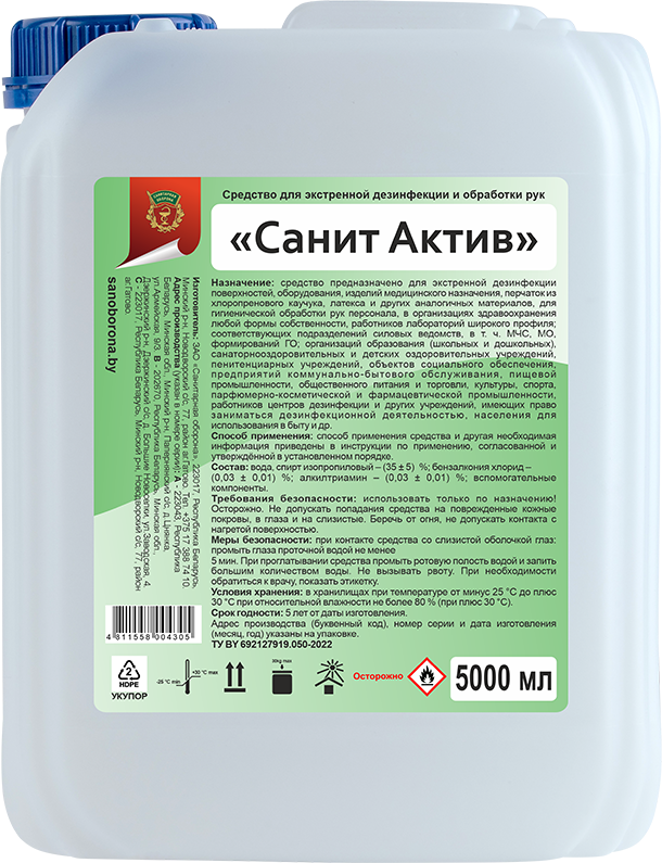 Дезинфицирующее средство АКТИВ для экстренной дезинфекции, спиртовой, экспозиция 30-45 сек, канистра 5 л.