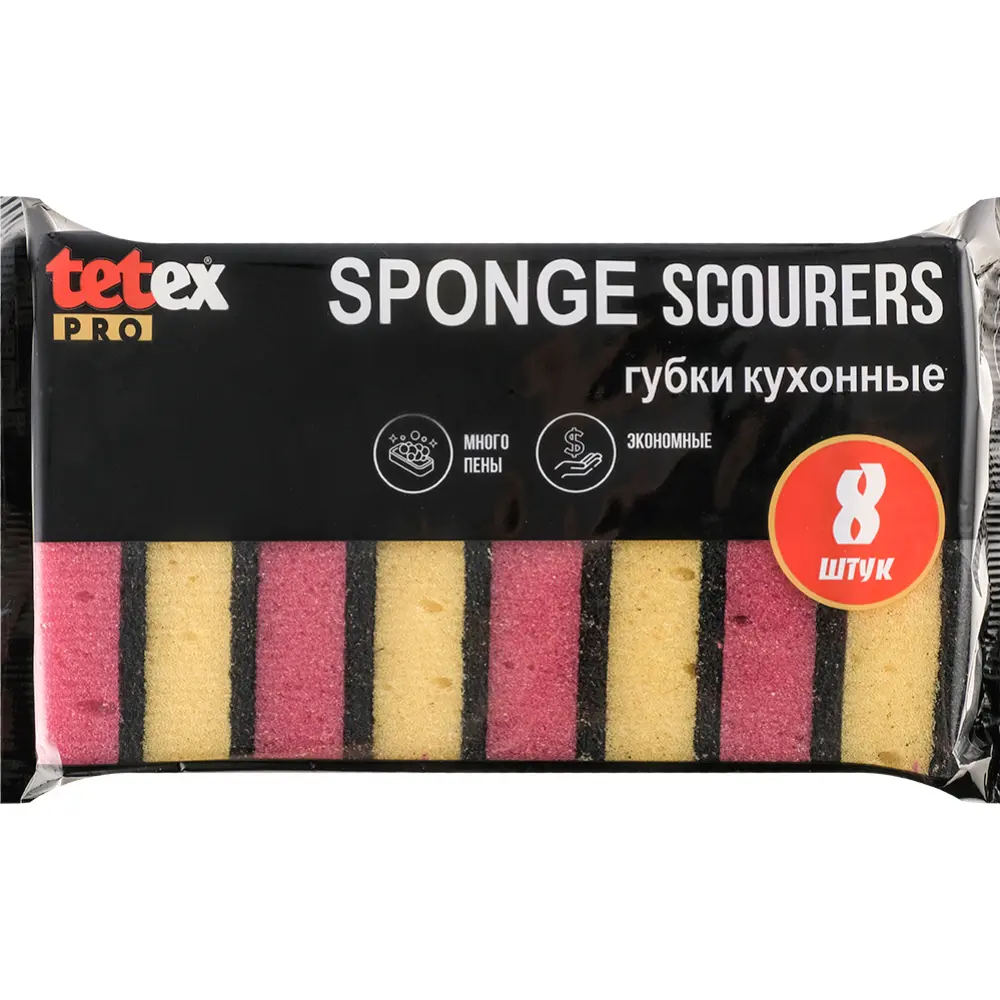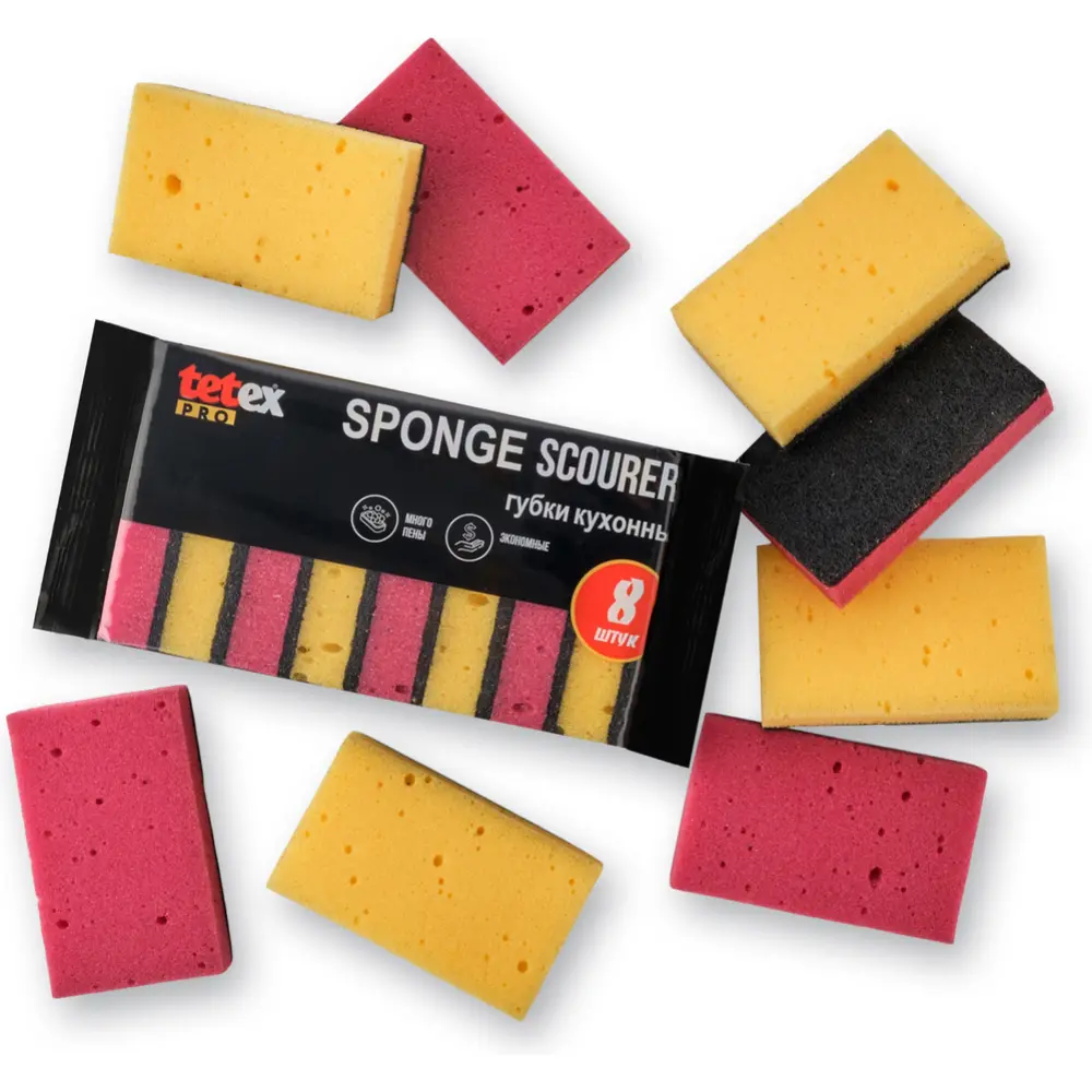 Губки кухонные серия TetexPro Sponge Scourers, пористые с абразивом, в одной спайке 8 шт, размер губки 115х70х25мм