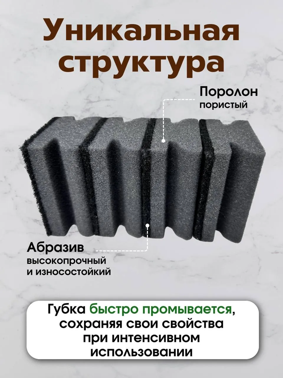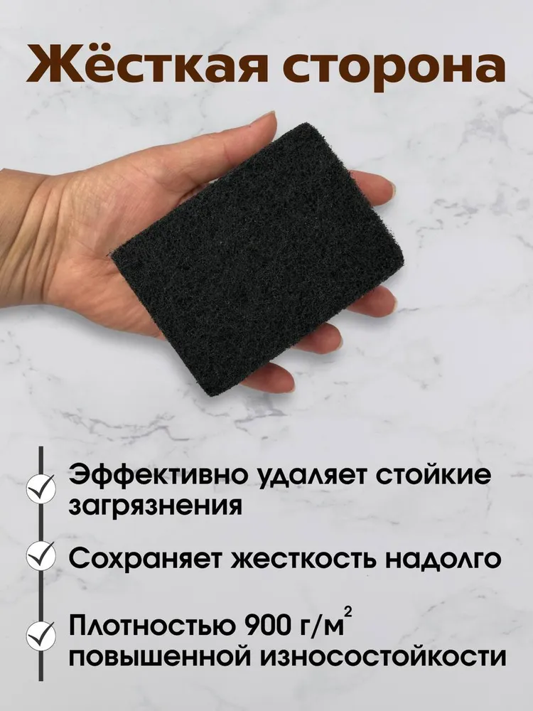 Состав: крупноячеистый поролон плотностью 22 г/м² с интенсивным пенообразованием, абразивный слой плотностью 900 г/м² повышенной износостойкости.