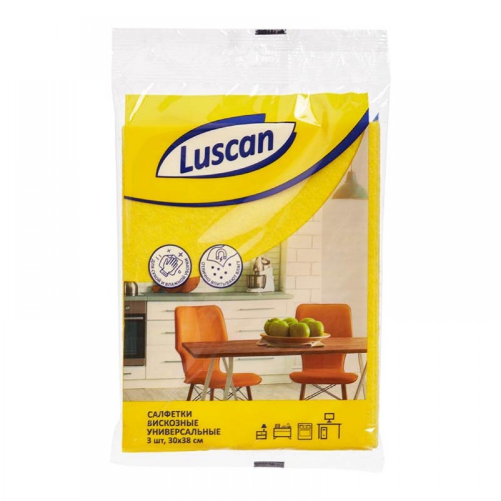 Салфетка вискозная LUSCAN 30*38 см. пл. 90 г/м2 3 шт/упак повышенной прочности