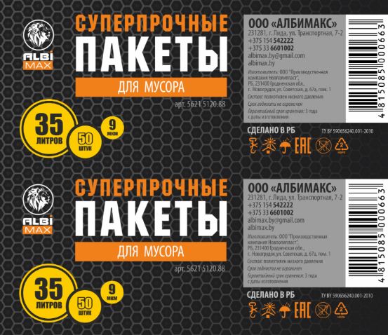 Мешки для мусора АВС- изготовлены из вторичного полиэтилена, который экологически чист и безвреден для окружающей среды. |
