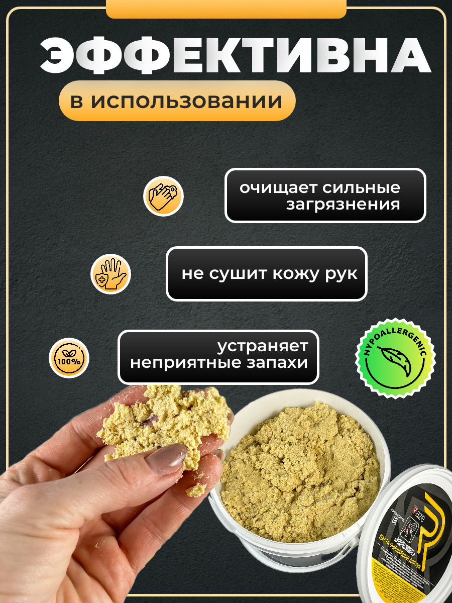 Паста очищающая RAZE PROFESSIONAL для рук на основе древесных опилок! Предназначена для очистки кожи рук от трудноудаляемых загрязнений, таких как: жир, нефтепродукты, битум, строительные смеси, масла, краски на водной основе, смазочные вещества, сажи. Рекомендуется для использования в автомобильных и механических мастерских, на предприятиях всех отраслей промышленности, сельского хозяйства, пищевых предприятиях после технических работ для очистки рук сотрудников, а также в быту.