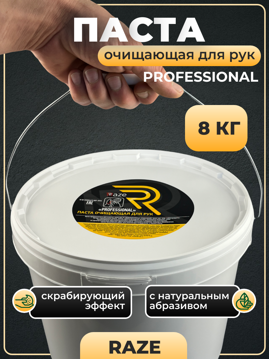 Паста очищающая для рук RAZE PROFESSIONAL с древесными опилками 8,0 кг