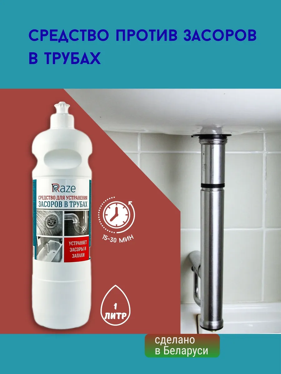 Средство RAZE для устранения засоров в трубах пуш-пул 1 л