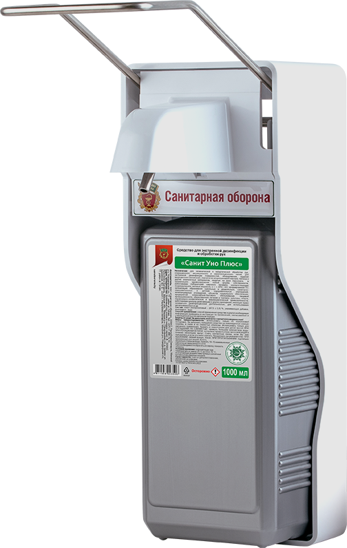 Дозатор ДУ-САНИТ 010 логтевой предназначен для порционной подачи на кожу рук различного вида антисептических, дезинфицирующих средств и жидкого мыла из литровых и полулитровых пластмассовых емкостей.