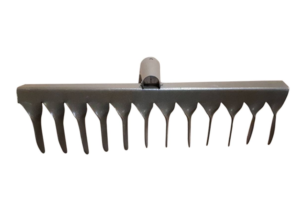 Грабли витые металлические 12-зубые без черенка выполнены из прочной стали и имеют окрашенную поверхность для защиты от коррозии. Тулейка для черенка надежно приклёпана к основанию изделия.
