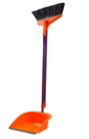 Набор метла+совок с длинной ручкой БЫСТРО-ЧИСТО PERFECTO LINEA (Ленивка), оранжевый