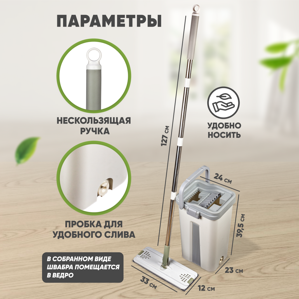 Размер швабры: 33×12×127 см