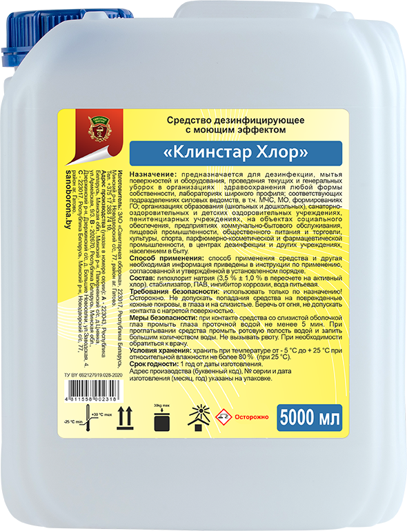 Дез. средство КЛИНСТАР ХЛОР концентр. для поверхностей, хлорное, канистра 5 л.