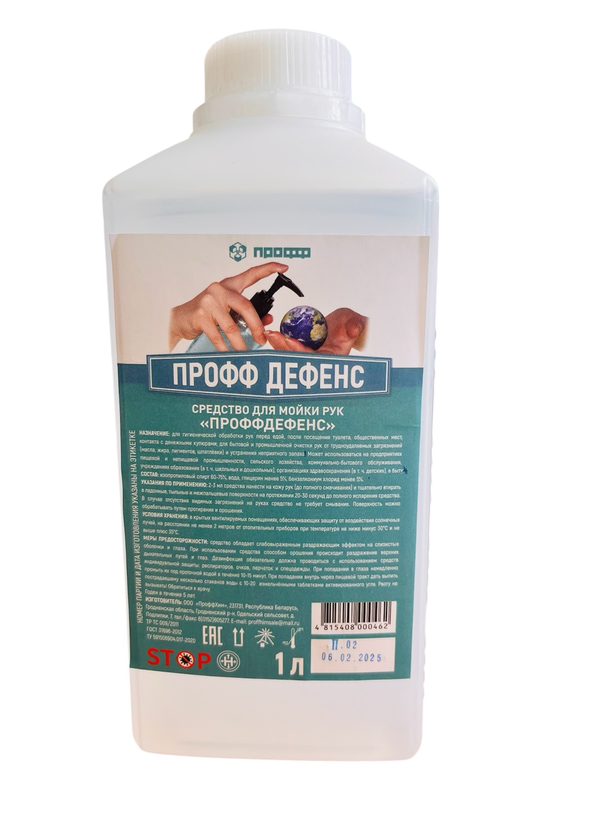 Дезинфицирующее средство ДЕФЕНС для экстренной дезинфекции спиртовое, экспозиция 1 мин., 1 л