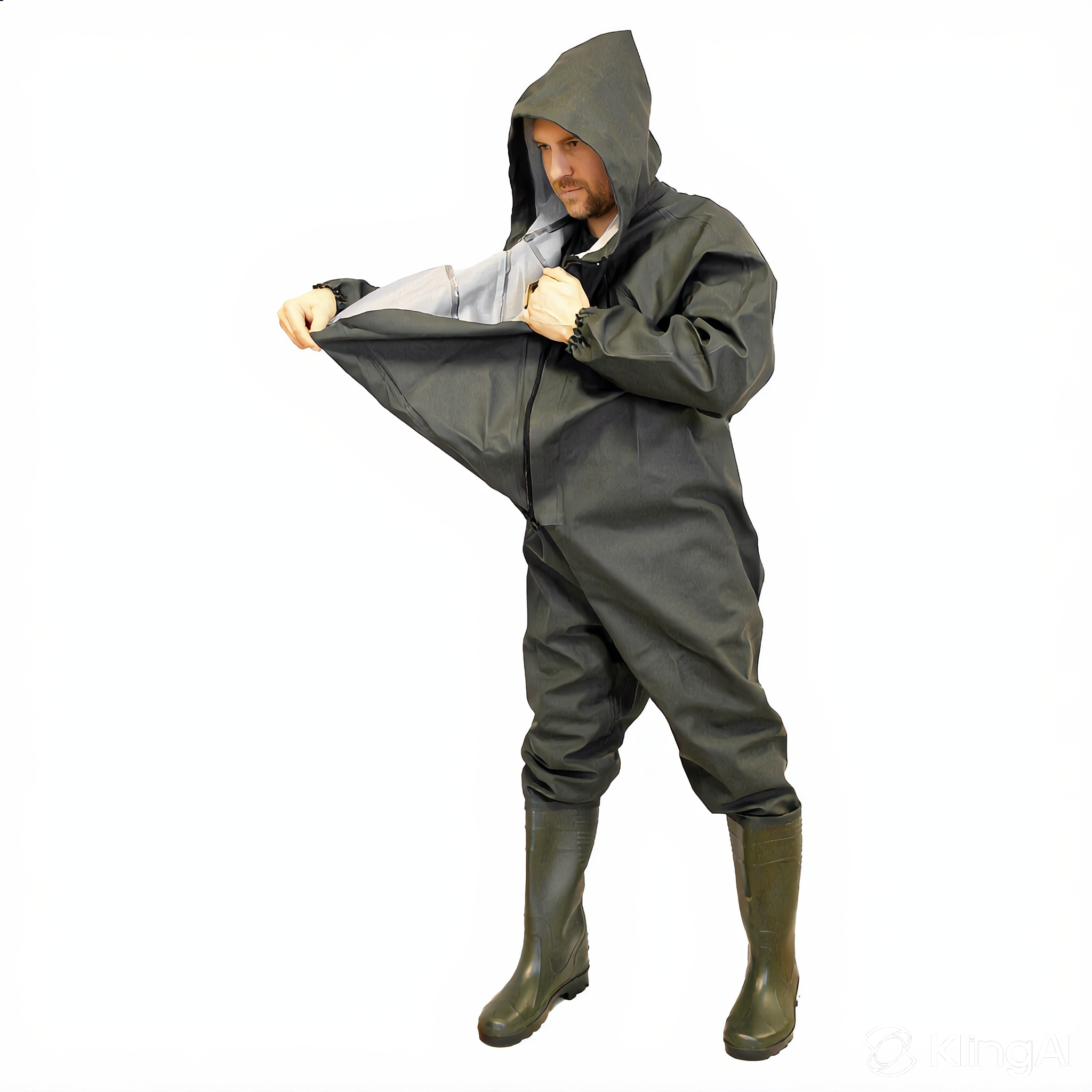 Водонепроницаемый комбинезон изготавливается из кожи искусственной – поливинилхлорид на трикотажной основе состав: ПВХ – 87%, полиэстер – 13%) на базе сапог мужских из пластиката поливинилхлоридного (состав: ПВХ – 100%).