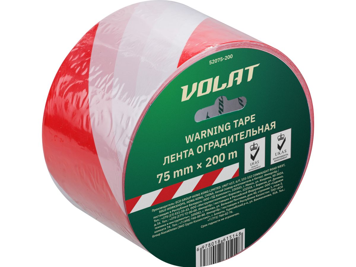 Лента оградительная ВОЛАТ 75мм*200м, 30 мкм, красно-белая