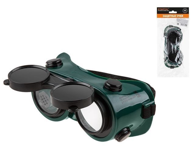 Очки газосварочные закрытые STARTUL 3H-7 с откидным блоком из термостойкой пластмассы с защитными минеральными стеклами и внутренними стеклами из бесцветного поликарбоната. Конструкция 2 в 1 позволяет вести работы: с опущенным стеклодержателем - связанные с опасным для глаз излучением, с поднятым стеклодержателем - связанные с защитой глаз от воздействия твердых частиц. Широкая регулируемая наголовная лента надежно и удобно фиксирует очки на голове пользователя, Преимуществом данной модели является малые габариты легкость и дешевизна.