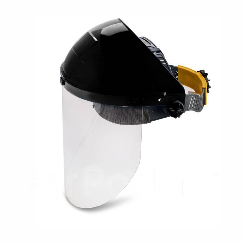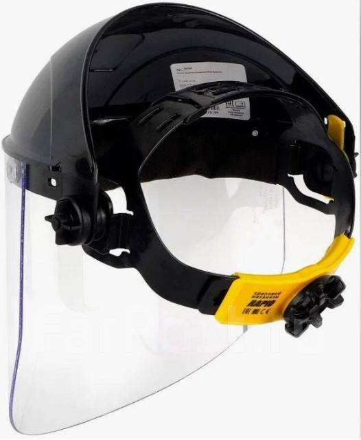 Щиток с наголовным креплением. Увеличенный скошенный экран из поликарбоната (оптический класс 1) с покрытием от царапин. Обеспечивает защиту лица, шеи и груди от частиц (190 м/с), тепла и механических воздействий. Козырек TermotreK® с местом под логотип. Оголовье с мягким сменным обтюратором, регулировка по темени и затылку.