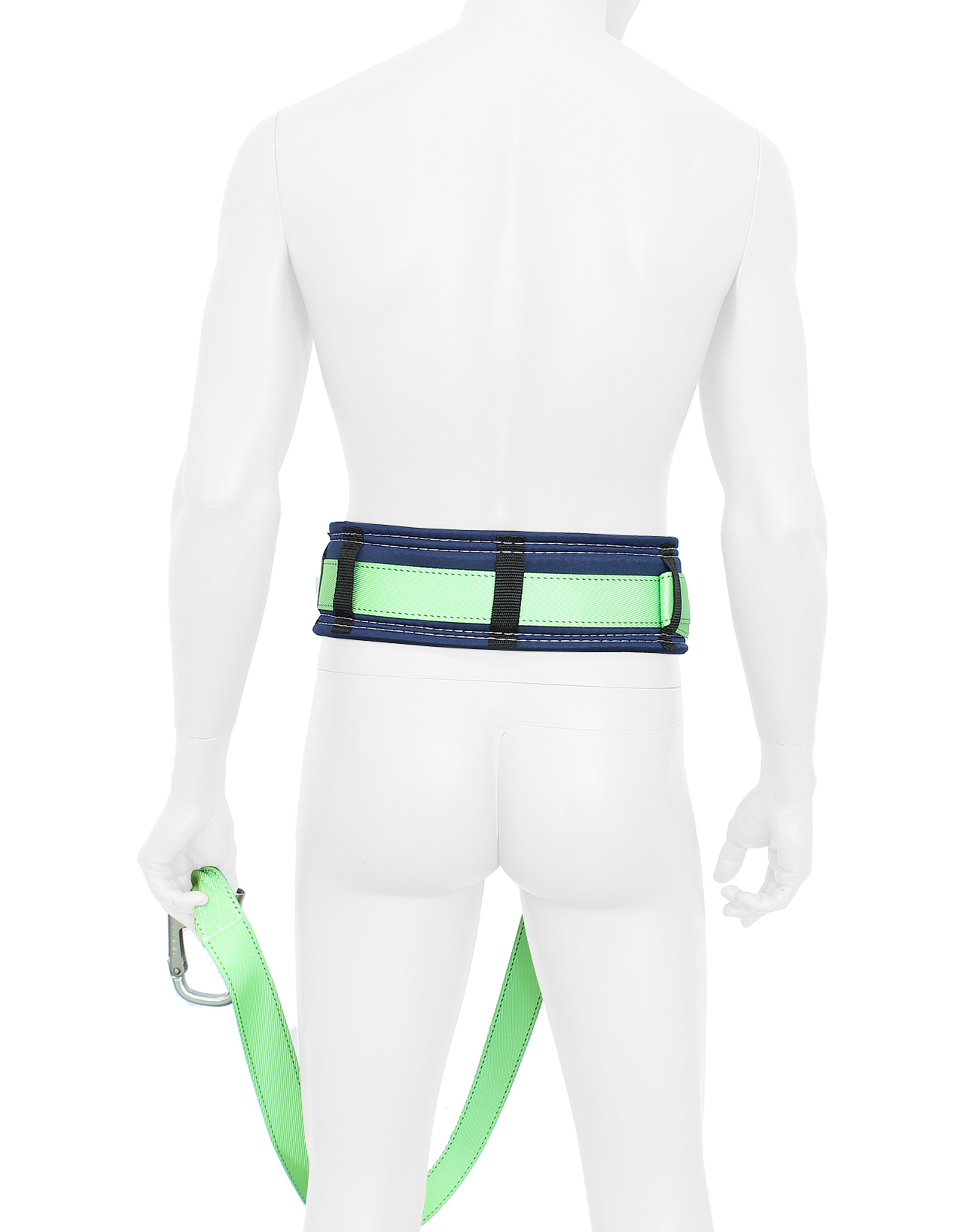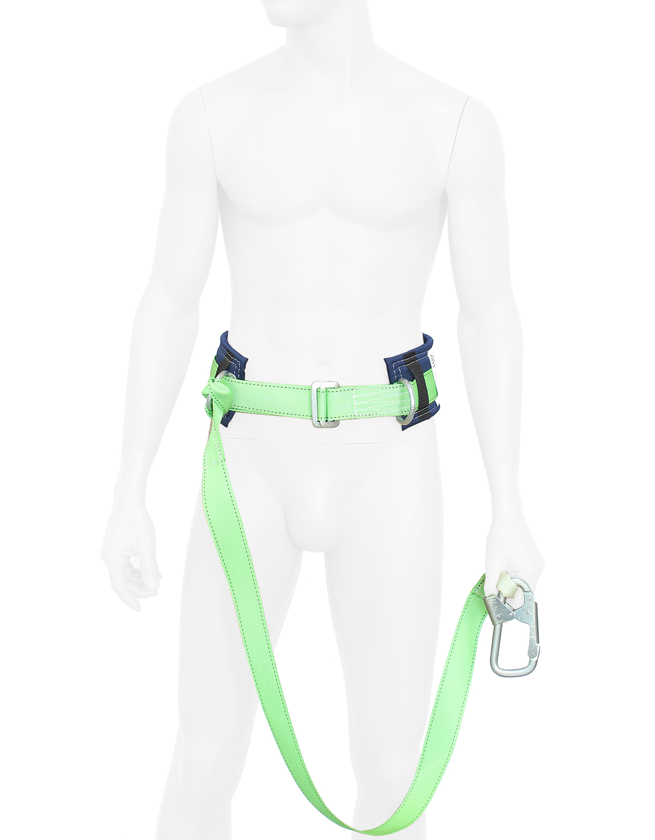 Система состоит из привязи ремня с пряжкой, кушака, двух D-колец на поясе и Стропа (полиэфирная лента, монтажный карабин). предохранительный безлямочный пояс со стропом из капроновой(полиамидной) ленты. Предназначен для удержания и позиционирования в рабочем положении при различных видах работ проводимых на высоте. Конструкция пояса позволяет подгонять пояс по фигуре человека.