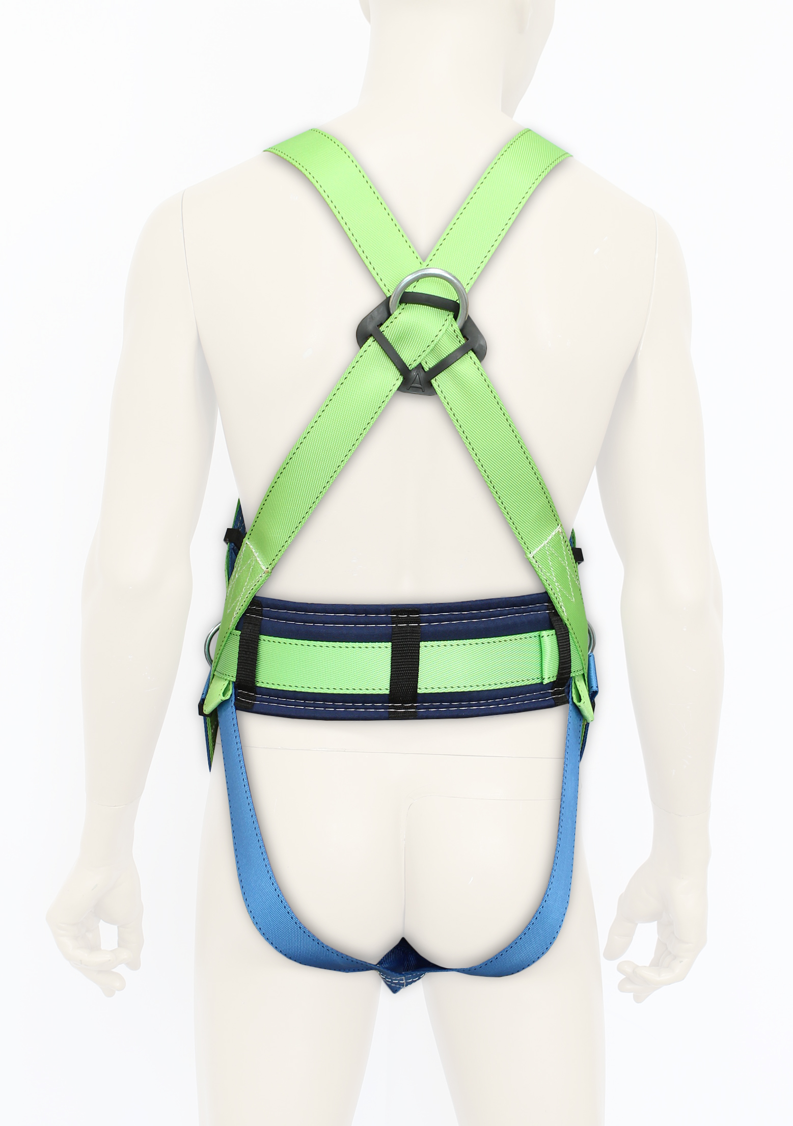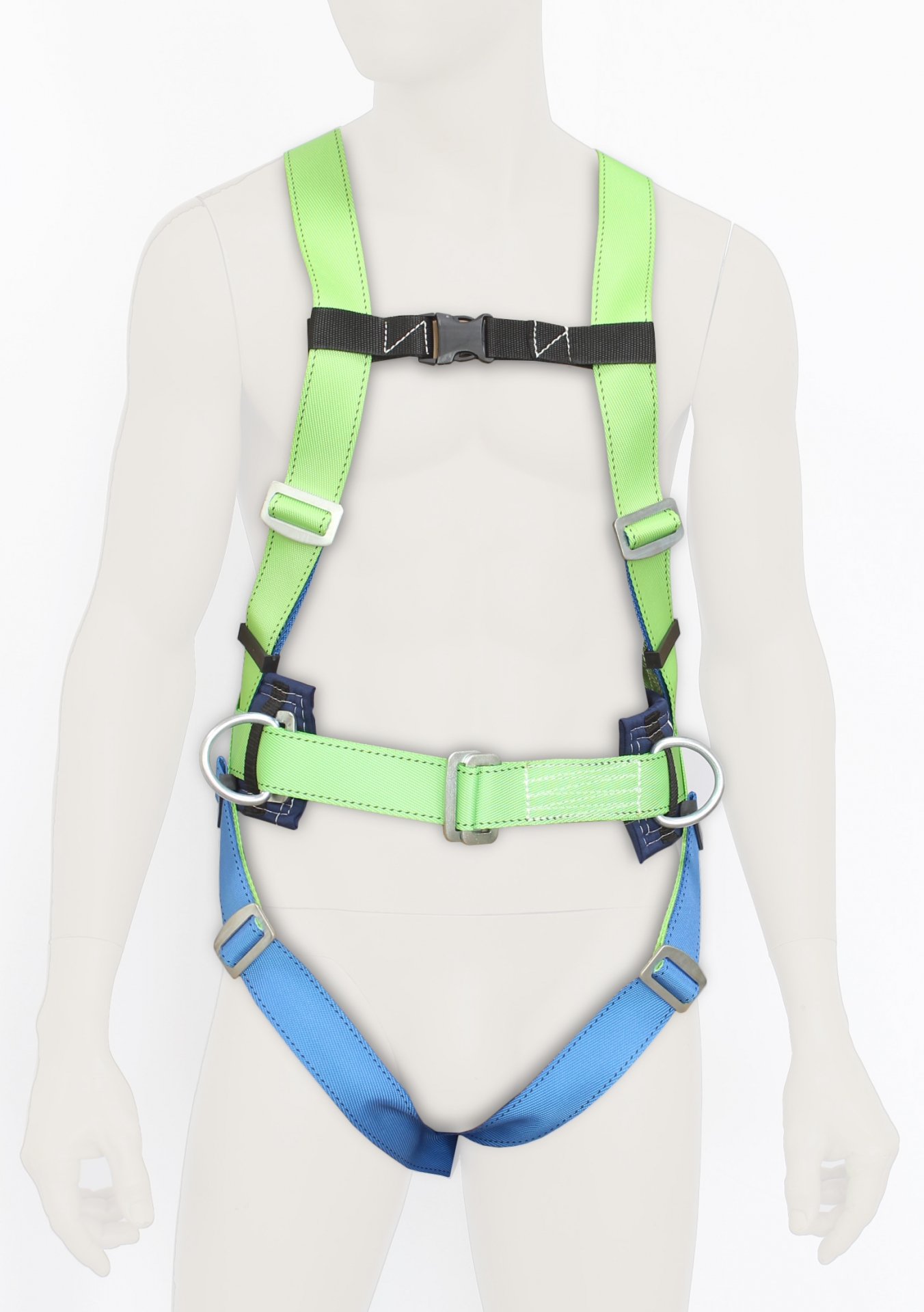 - Страховочная привязь имеет две точки крепления: два D-кольца на поясе (для удержания и позиционирования) и одного на спине (для спасательных работ, экстренной эвакуации и страховки).