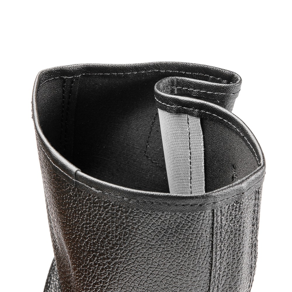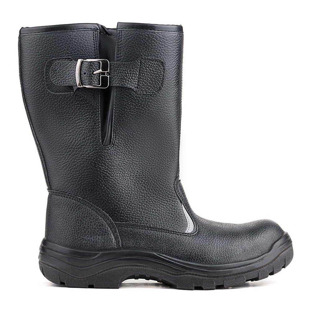 Кожаные сапоги 15-ОИ дополнены ремнем с металлической пряжкой для возможности регулировать и комфортно фиксировать ширину голенища. Светоотражающие элементы повышают видимость работников в темное время суток, а также на неосвещенной территории. Глубина протектора ходового слоя обеспечивает хорошую сцепляемость с поверхностями и препятствует скольжению за счет рельефа протектора.