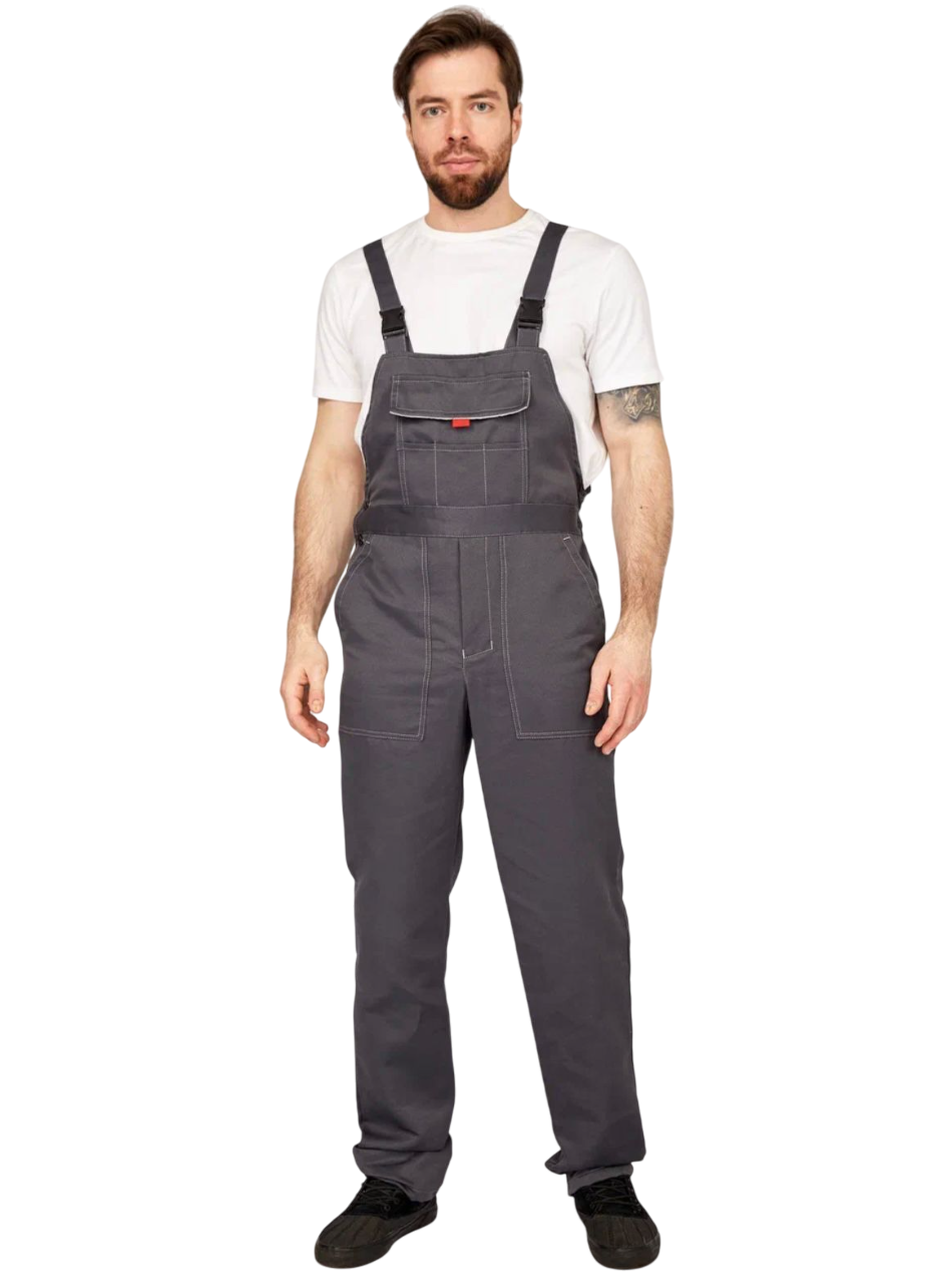 Карманы: на нагруднике двойной накладной карман с клапаном на контактной ленте, малый накладной карман разделён на три части; боковые накладные карманы с наклонной линией входа; на задней половинке фигурный накладной карман; двойной карман для инструментов.
