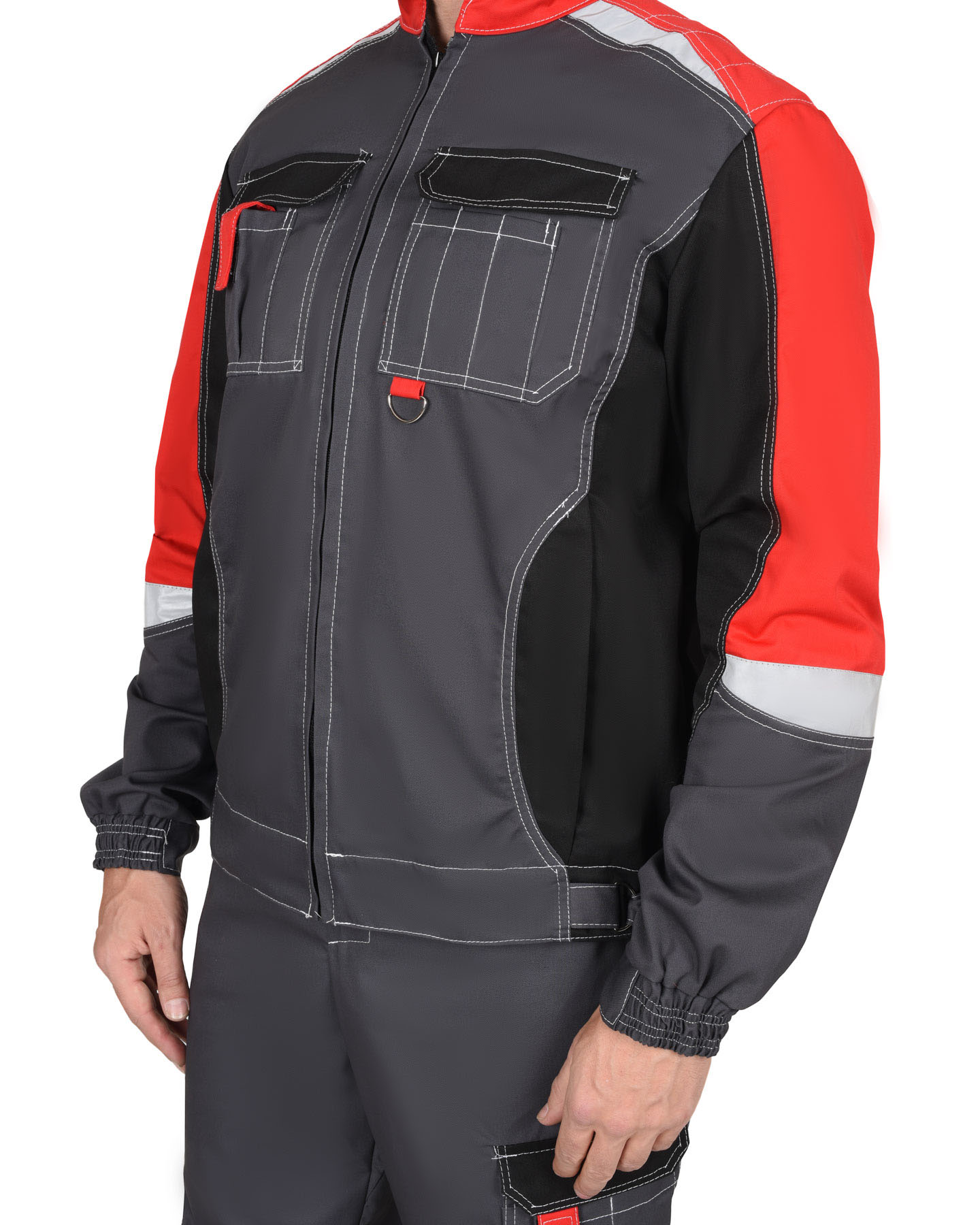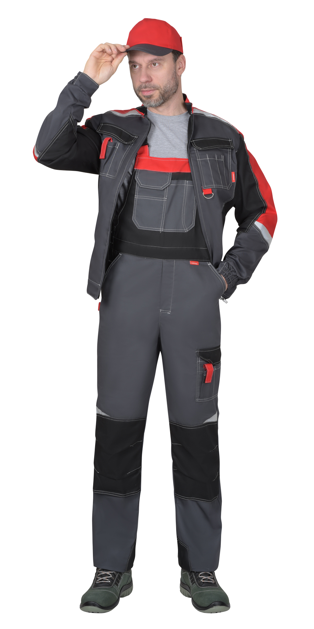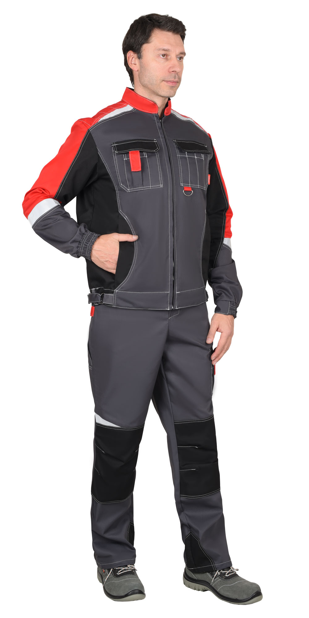 Костюм с п/к МЕГА 35хб/65пэ, пл.245, темно-серый/черный/красный