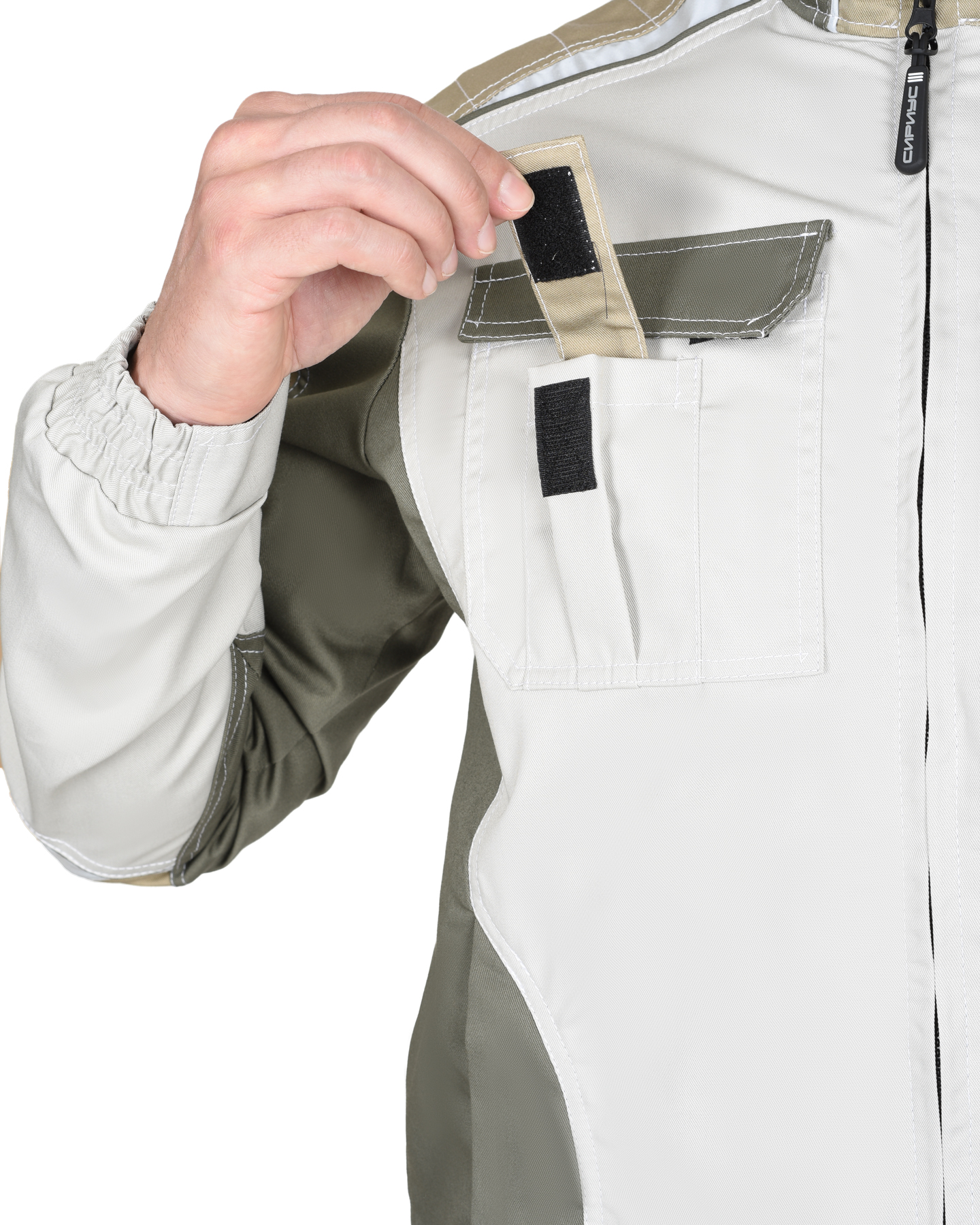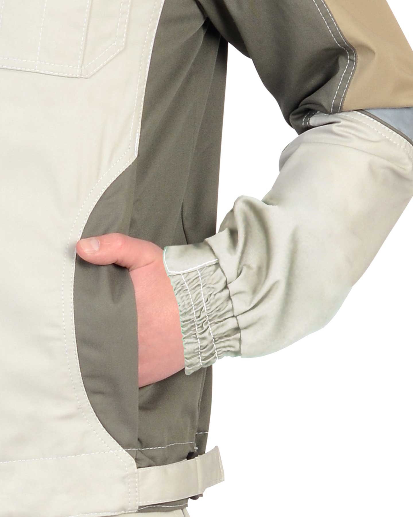 Рукава: рукава втачные, с отрезными манжетами, с частичной стяжкой на резинку. Дополнительно: в куртке предусмотрено крепление бейджа.