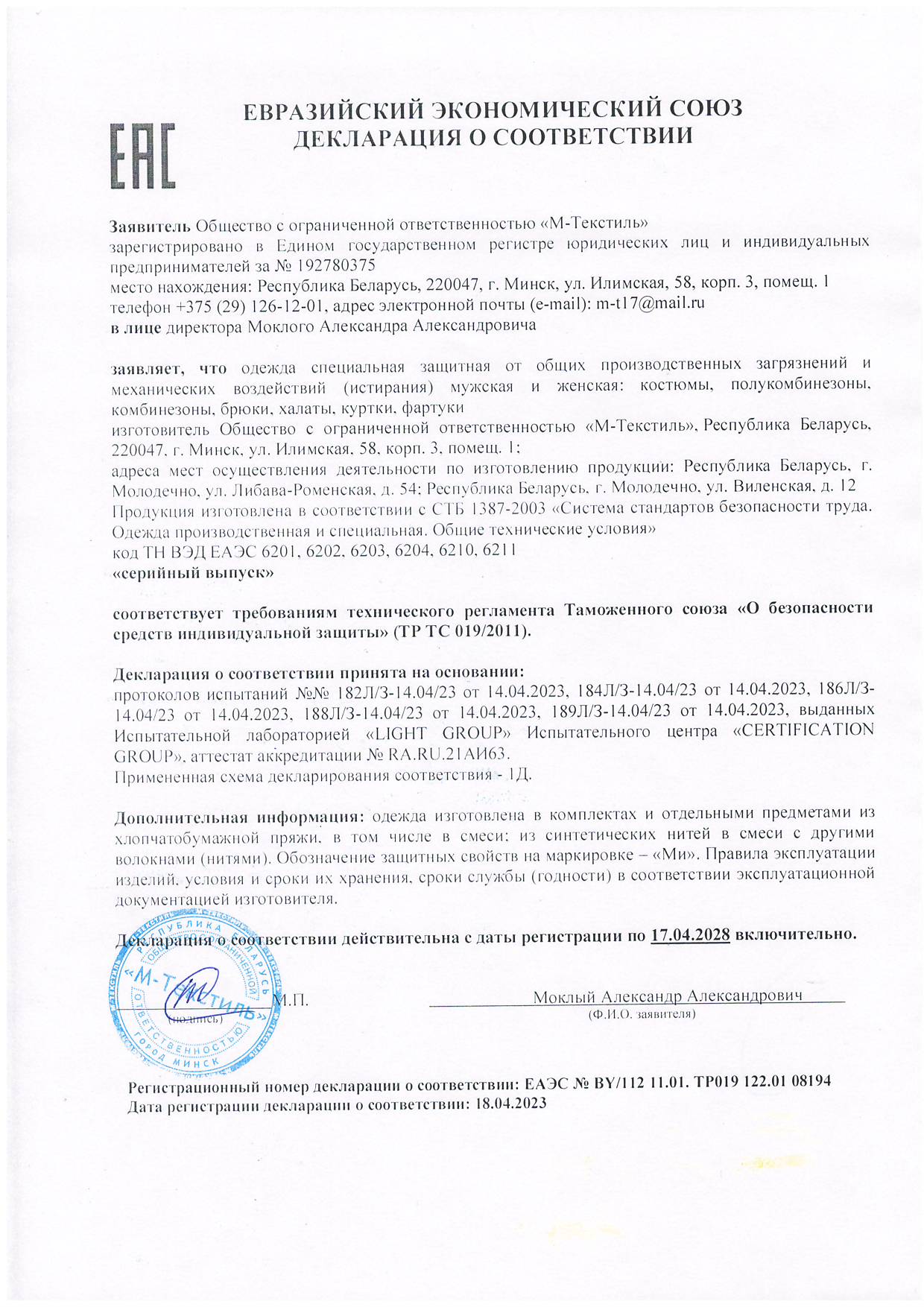 Одна из самых популярных моделей бюджетного костюма с полукомбинезоном из смесовой ткани с лёгкой водоотталкивающей пропиткой. Широко используется во всех отраслях промышленности и сельского хозяйства.