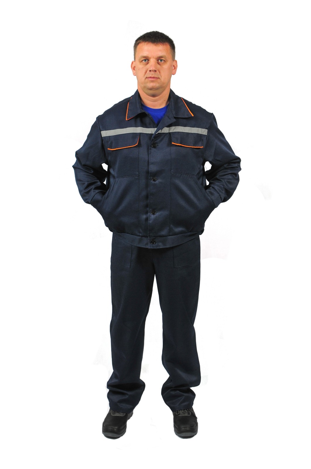 Костюм с п/к СПЕЦ-ЛИДЕР 35хб/65пэ, пл.220, синий/оранжевый