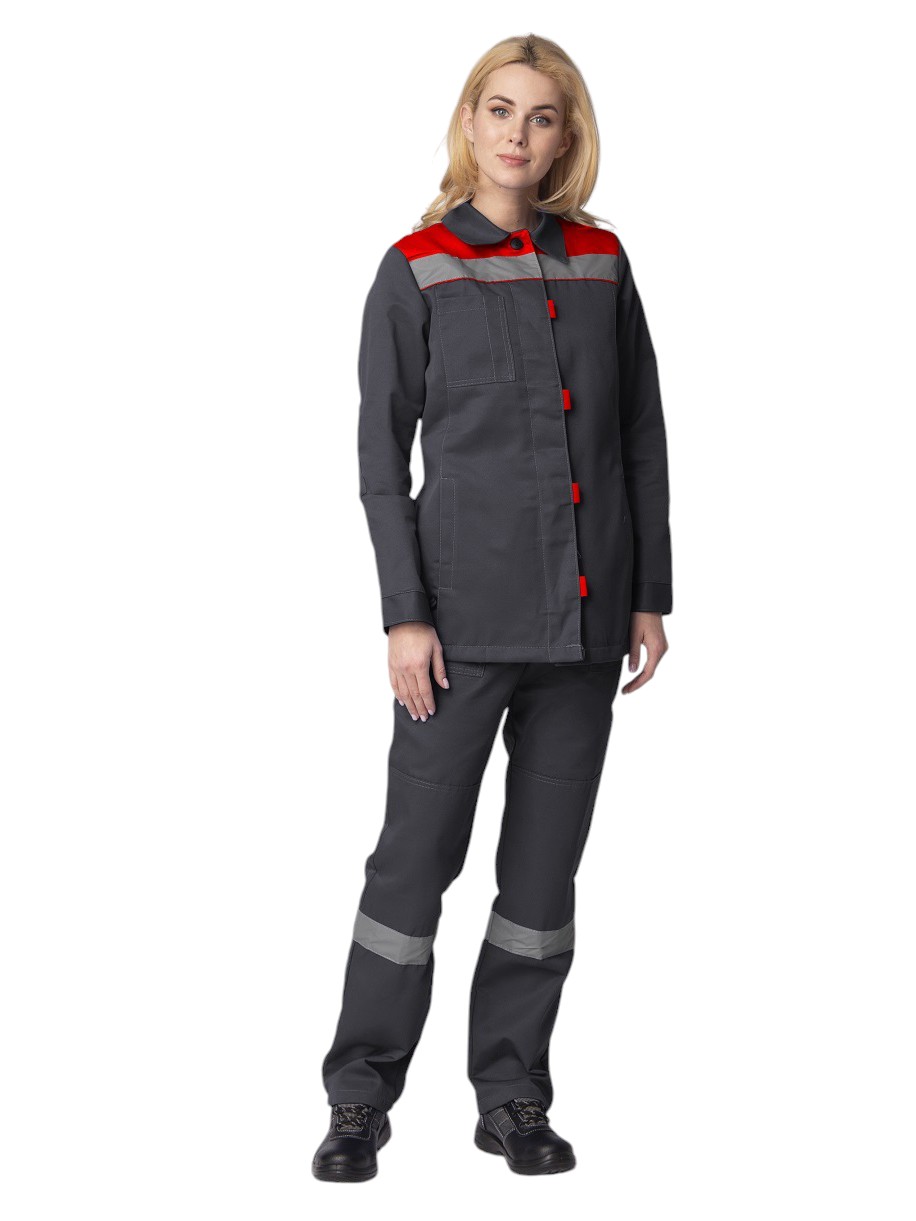 Костюм женский с брюками ВЕСНА-1 NEW 35хб/65пэ, пл.210, т.сер/красный