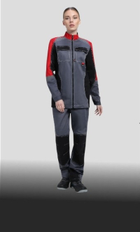 Костюм женский с брюками ФОРМУЛА-1 35хб/65пэ, пл.240, сер/красн/черн.