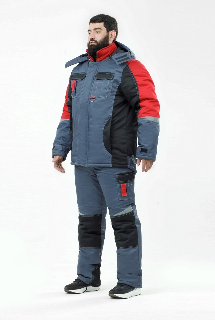 Костюм утеплённый с п/к ИНТЕГРАТОР ПЛЮС 35хб/65пэ, пл.240, сер/черн/красн., р.56-58/182-188