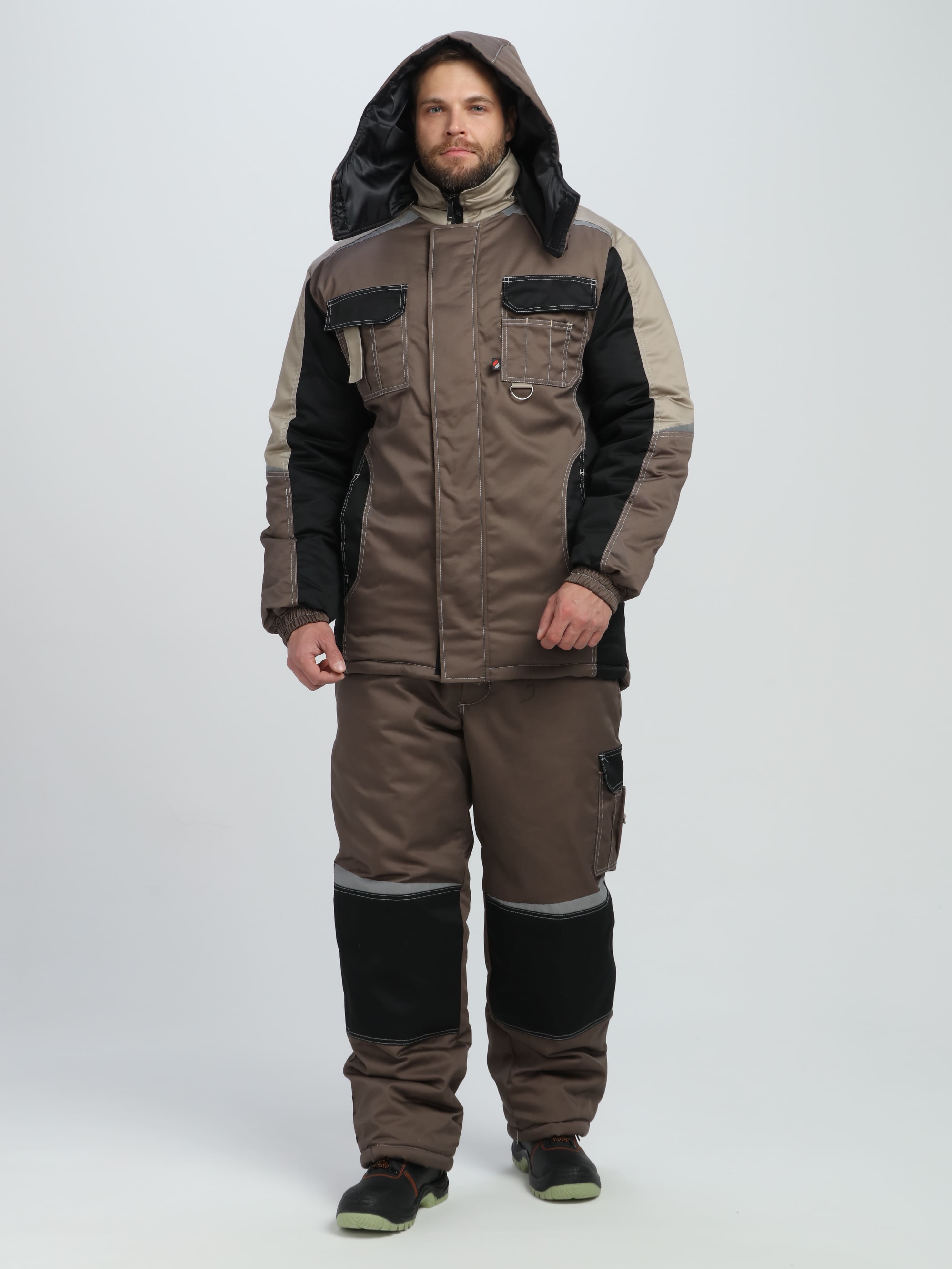 Костюм утепленный с брюками МЕГА 35хб/65пэ, пл.240, корич/чер/беж., р.48-50/170-176