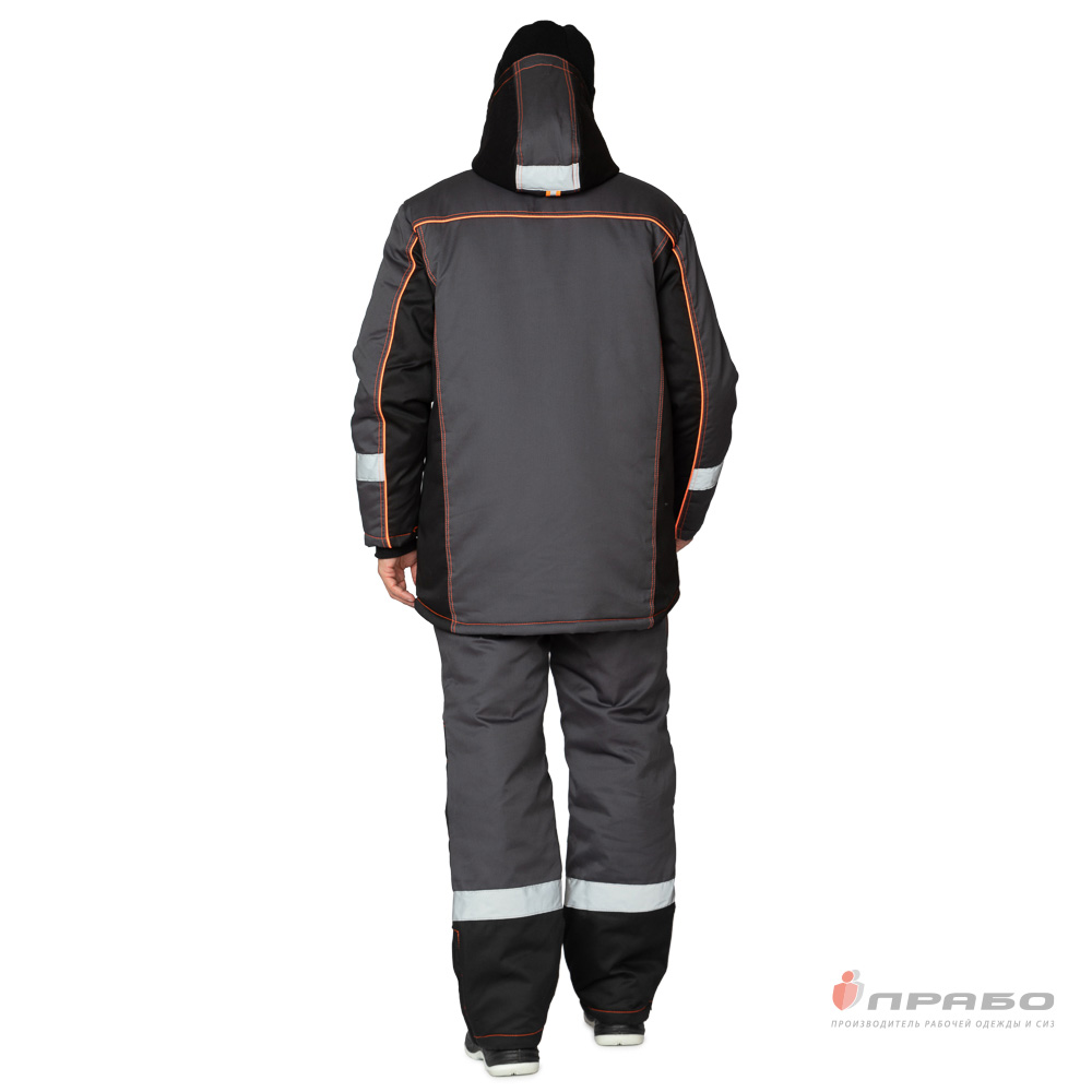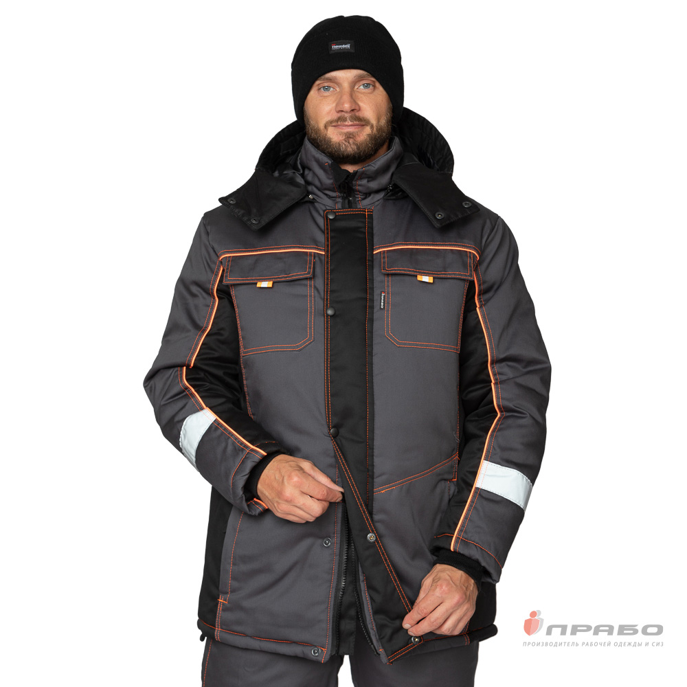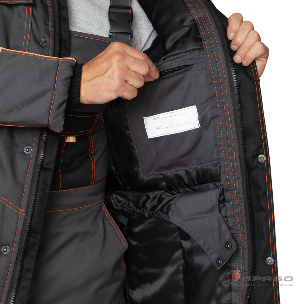 Костюм утепленный с п/к БРЕНД-К 35хб/65пэ, пл.200, темно-серый/черный/оранжевый, р.48-50/170-176