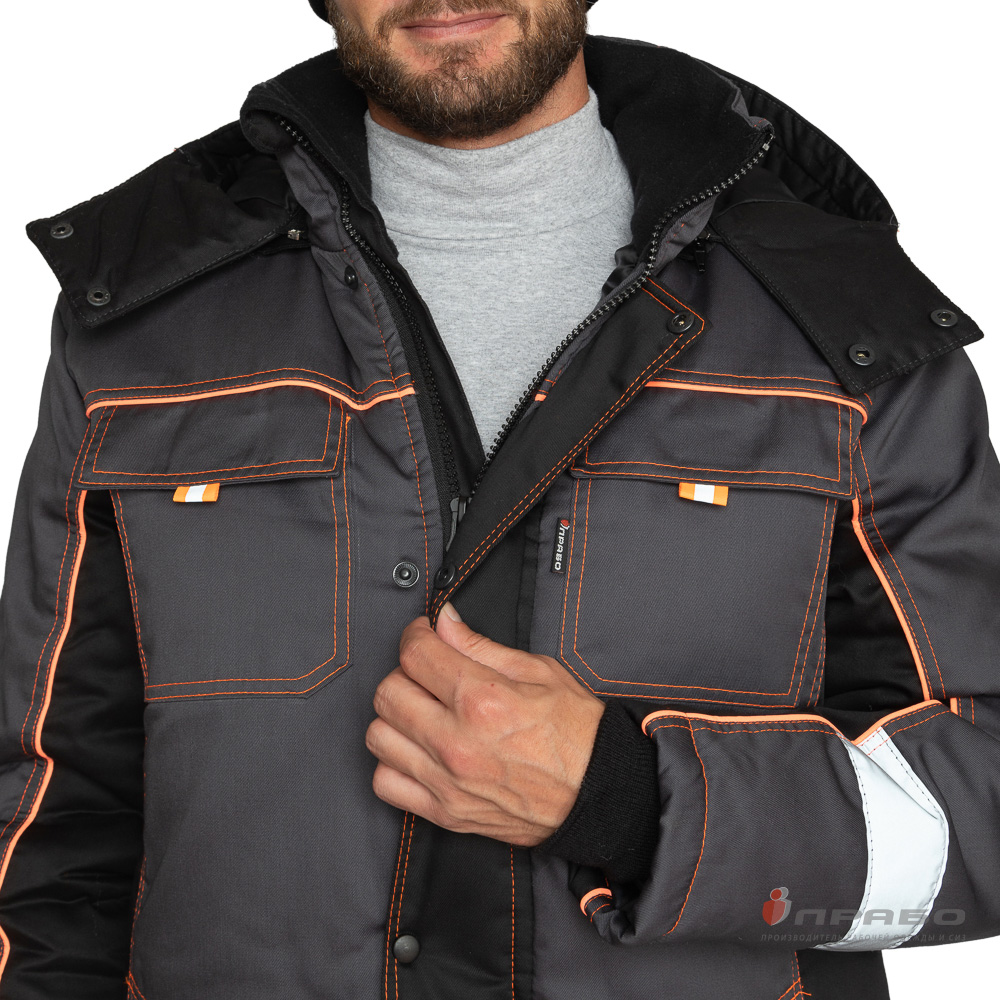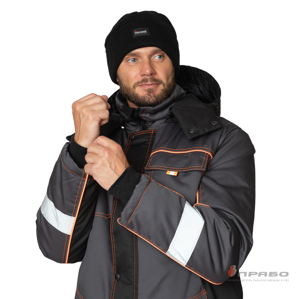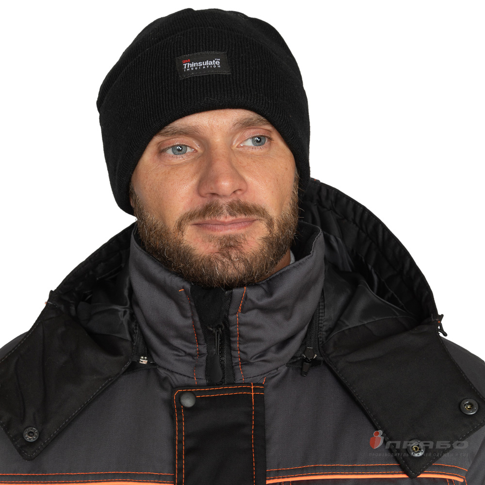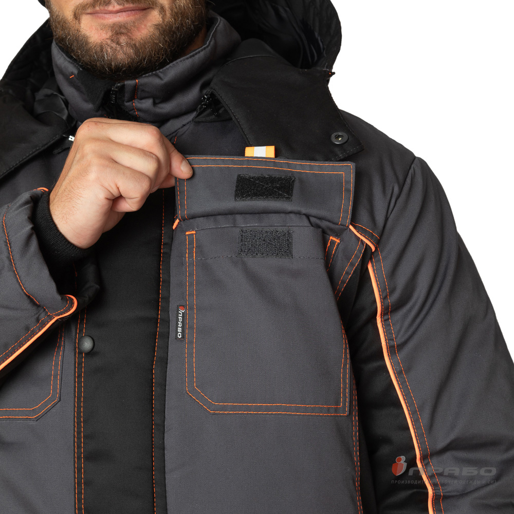 Костюм утепленный с п/к БРЕНД-К 35хб/65пэ, пл.200, темно-серый/черный/оранжевый, р.48-50/170-176