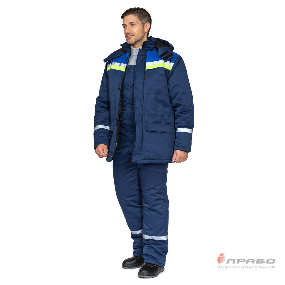 Костюм утепленный с п/к СТРОЙКА 20хб/80пэ пл.190 темно-синий/василёк/лимонный