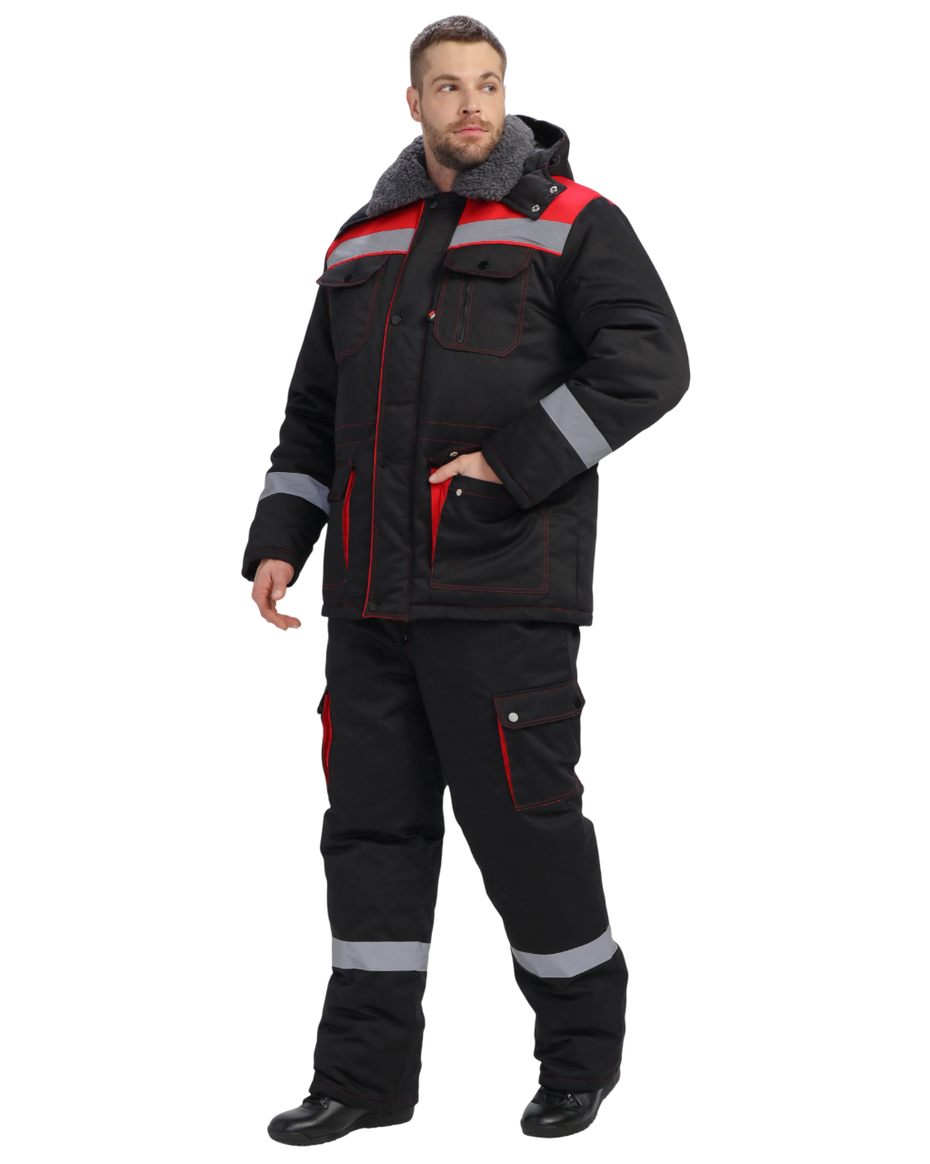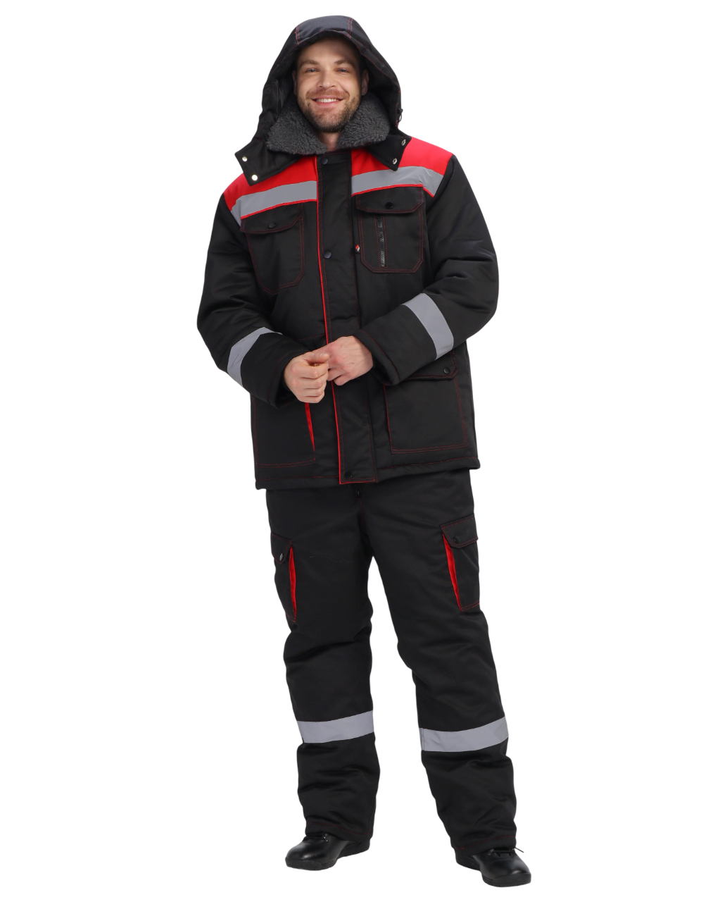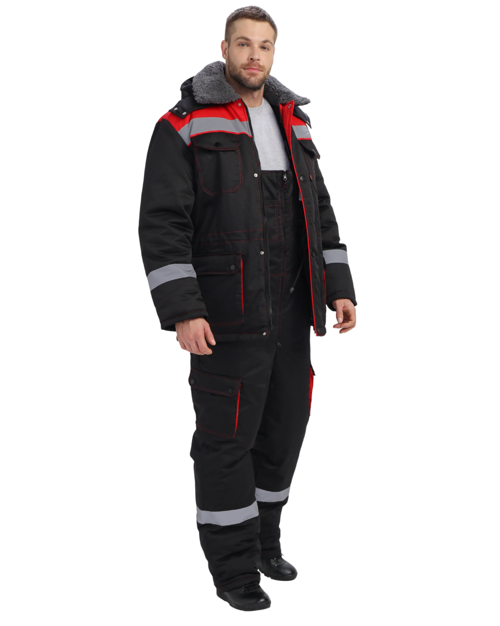 Костюм утепленный с п/к НЕЙЧ ТИТАН-УЛЬТРА 35хб/65пэ, пл.240, черный/красный, 56-58/182-188