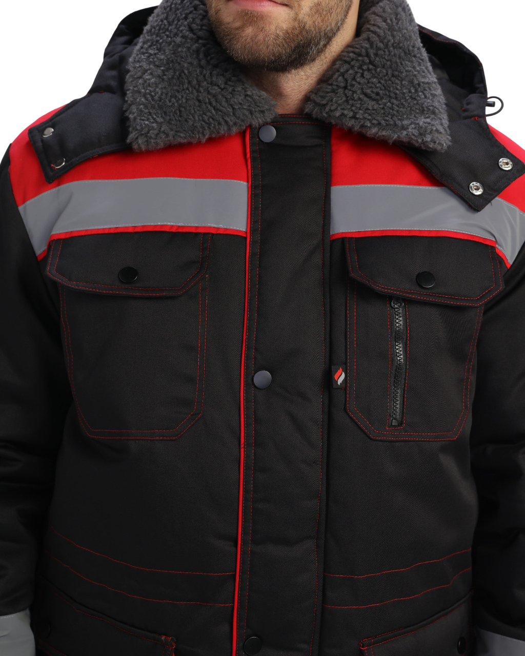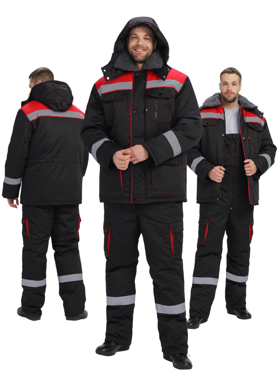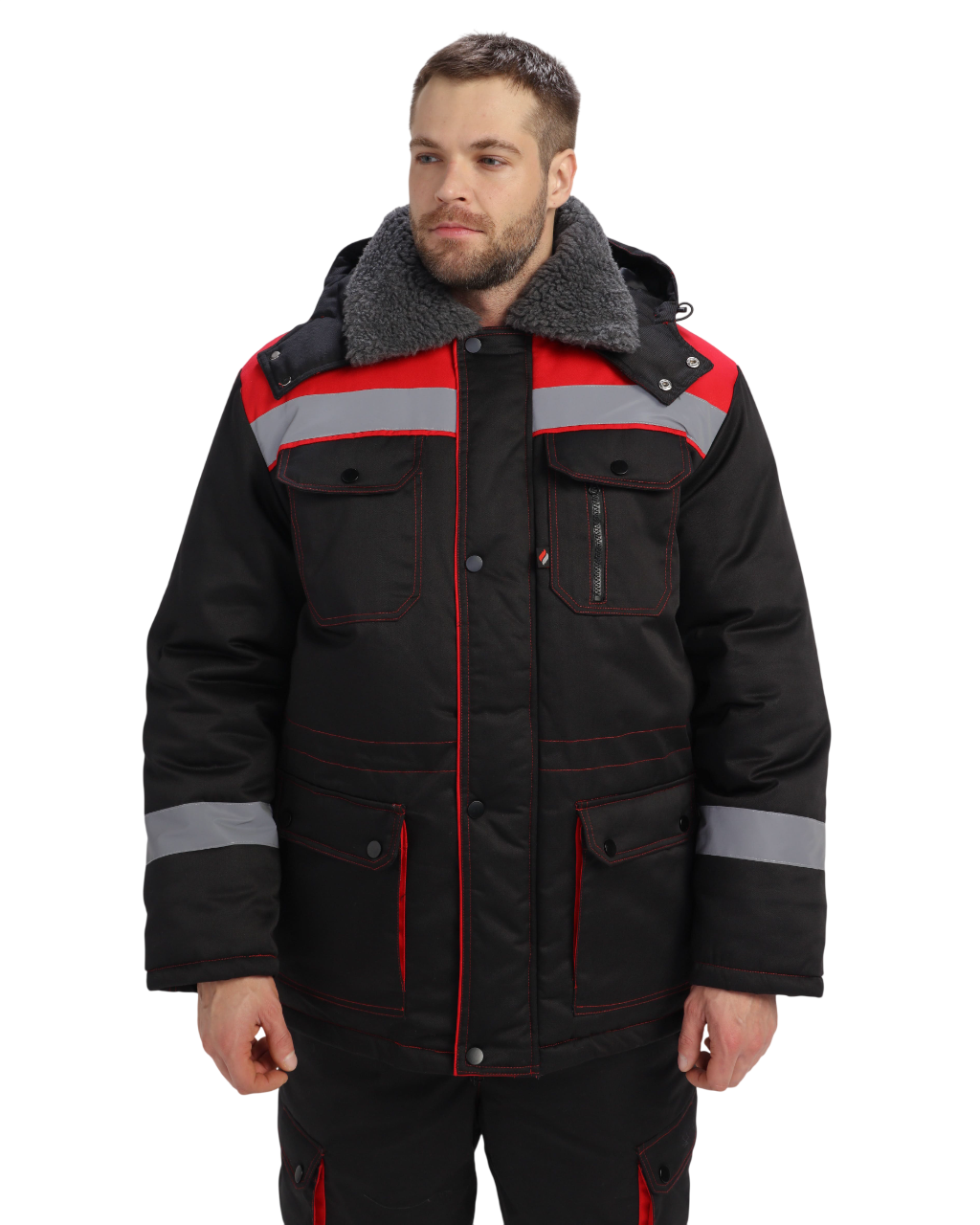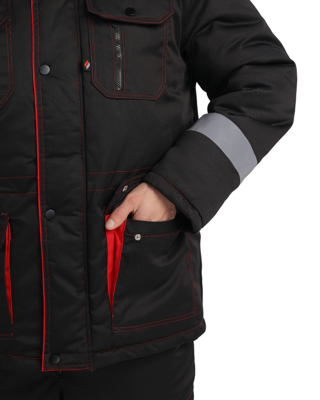 Костюм утепленный с п/к НЕЙЧ ТИТАН-УЛЬТРА 35хб/65пэ, пл.240, черный/красный, 56-58/182-188