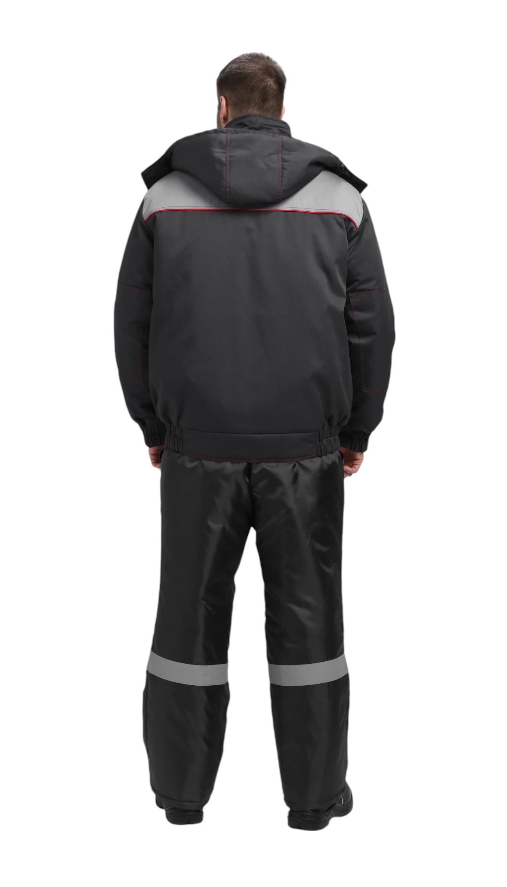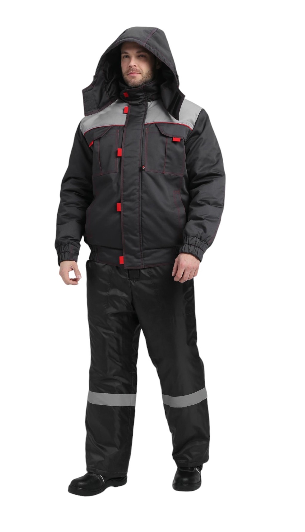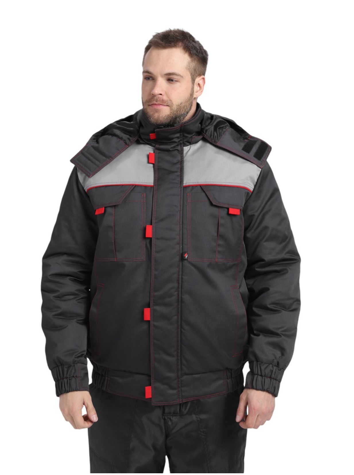 Куртка утепленная ФЛОФТ ФАВОРИТ ПРЕМИУМ короткая 35хб/65пэ, пл.240, темно-серый/серый/красный ТОЛЬКО 64-66/170-176