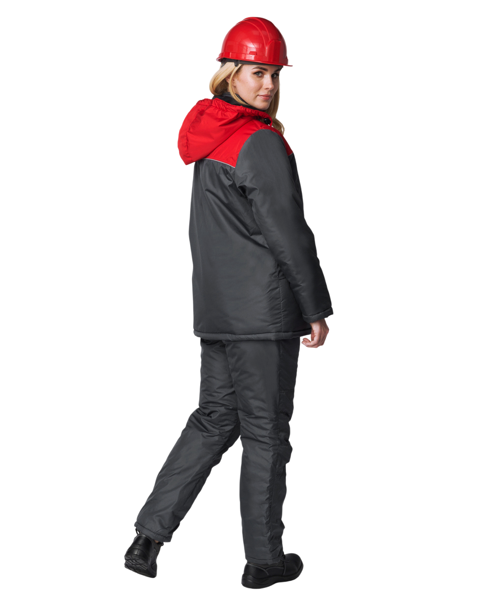 Куртка утепленная женская САКРИН СНЕЖАНА на замке ткань ДЮСПО 100пэ, пл. 80, т.сер/крас.