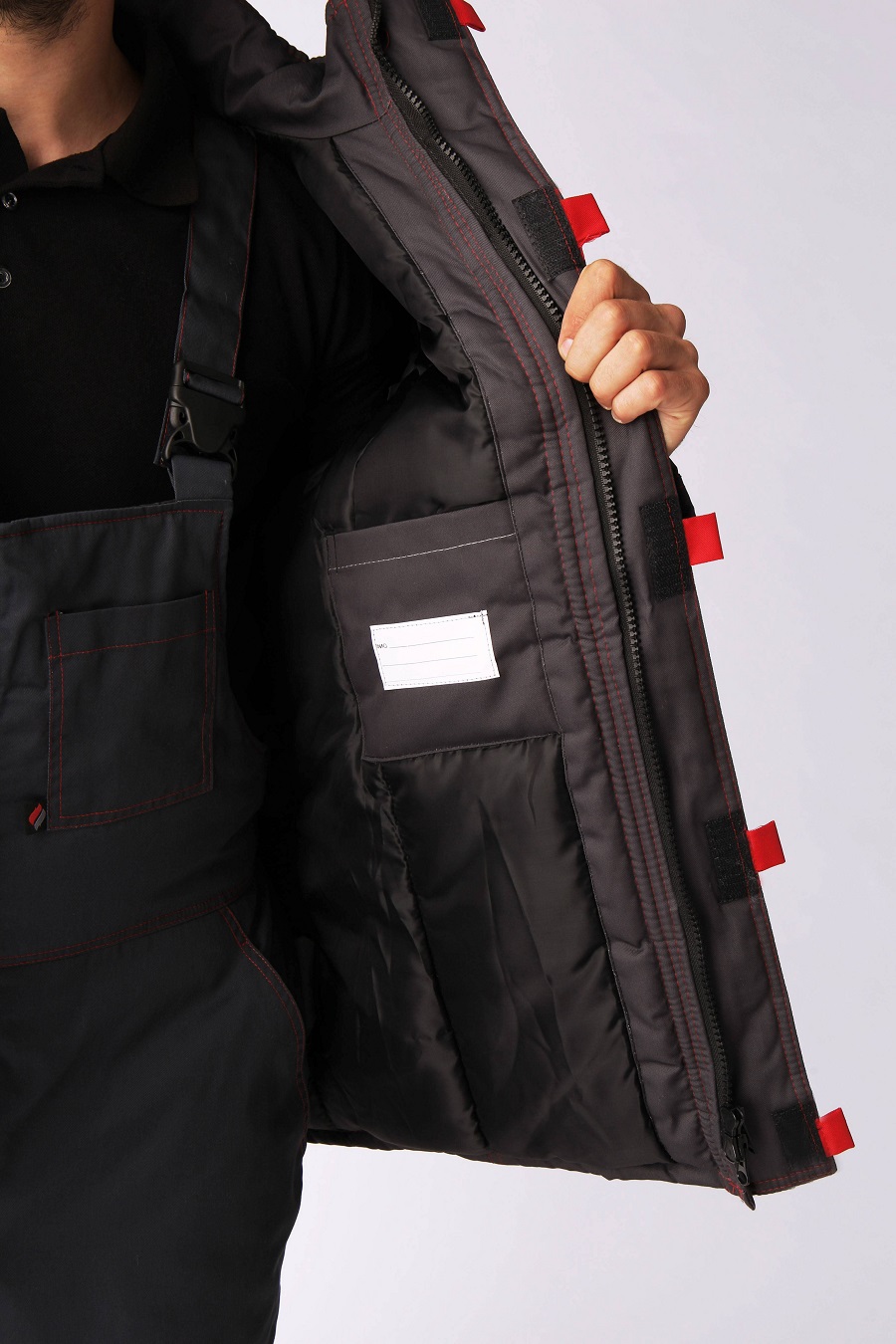 Куртка утепленная ФЛОФТ ФАВОРИТ удлиненная на замке ткань БАЛТЕКС 35хб/65пэ, пл.240, т.сер/сер/красн.