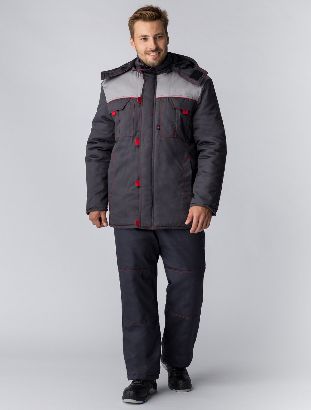 Куртка утепленная ФАВОРИТ удлинённая 35хб/65пэ, пл.240, т.сер/сер/красн. |