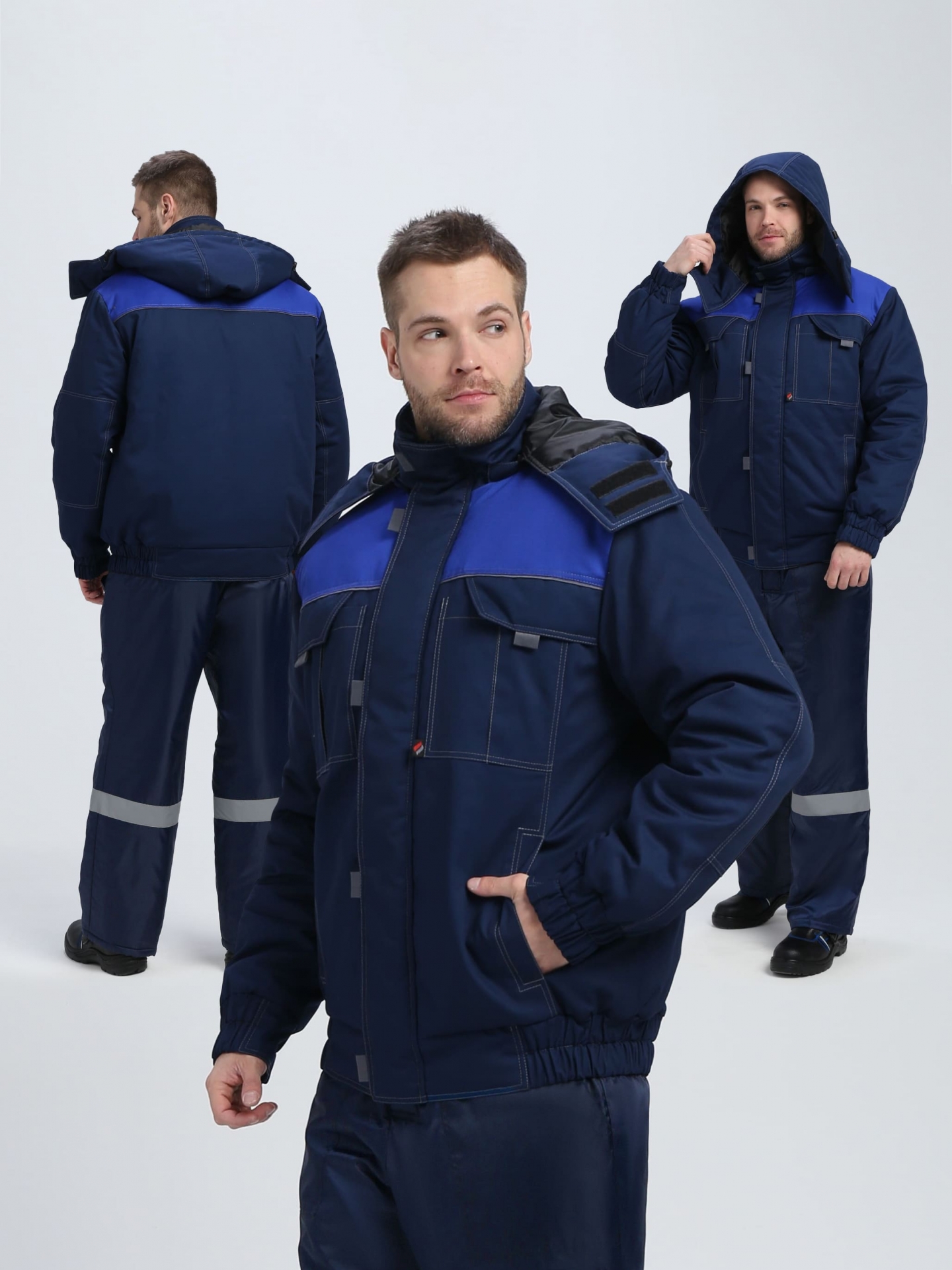 Куртка утепленная ФЛОФТ ФАВОРИТ короткая на замке ткань БАЛТЕКС 35хб/65пэ, пл.240, т.син/вас/сер.