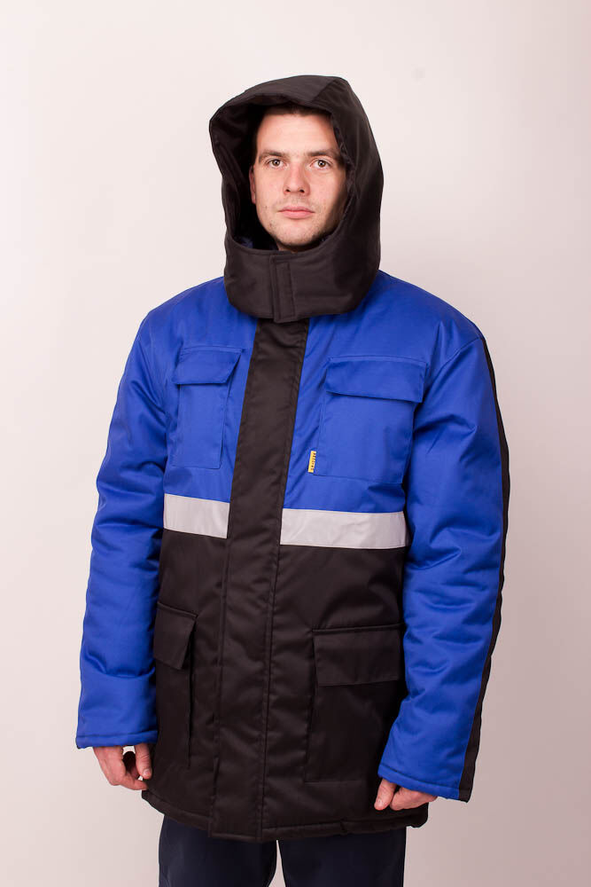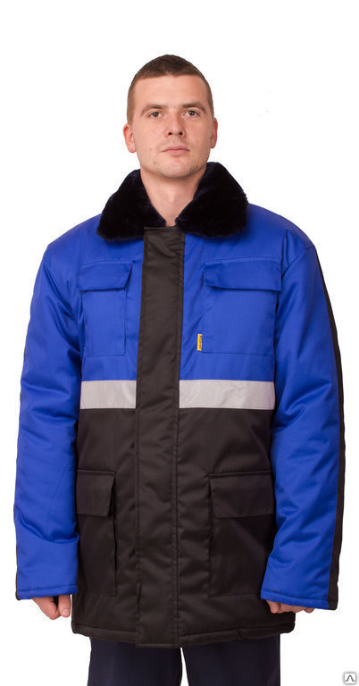 Куртка утепленная ПРОФЕССИОНАЛ на замке Герда (КИТАЙ) 35хб/65пэ, пл.210 чёрн/василек ТОЛЬКО РАЗМЕР 60-62/182-188