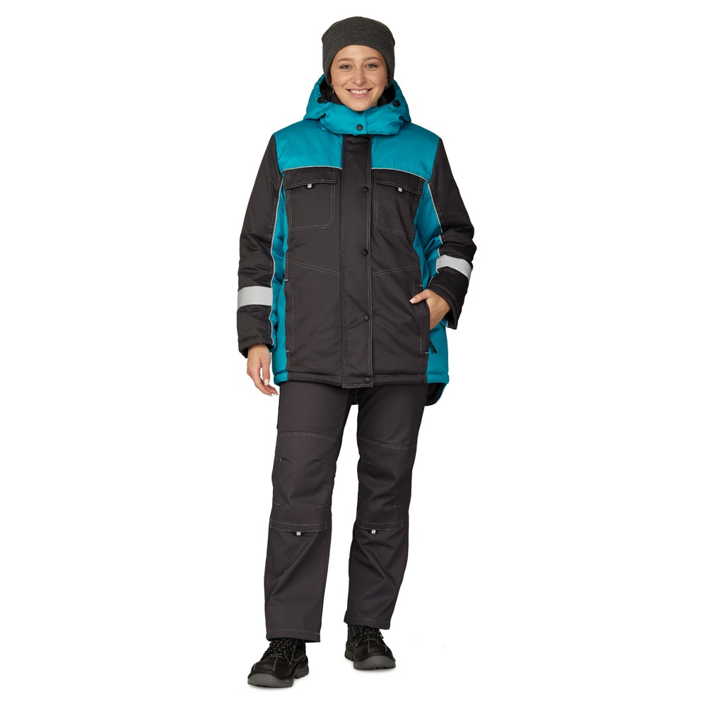 Куртка утепленная женская БРЕНД 35хб/65пэ, пл.200, темно-серый/бирюза, р.48-50/170-176