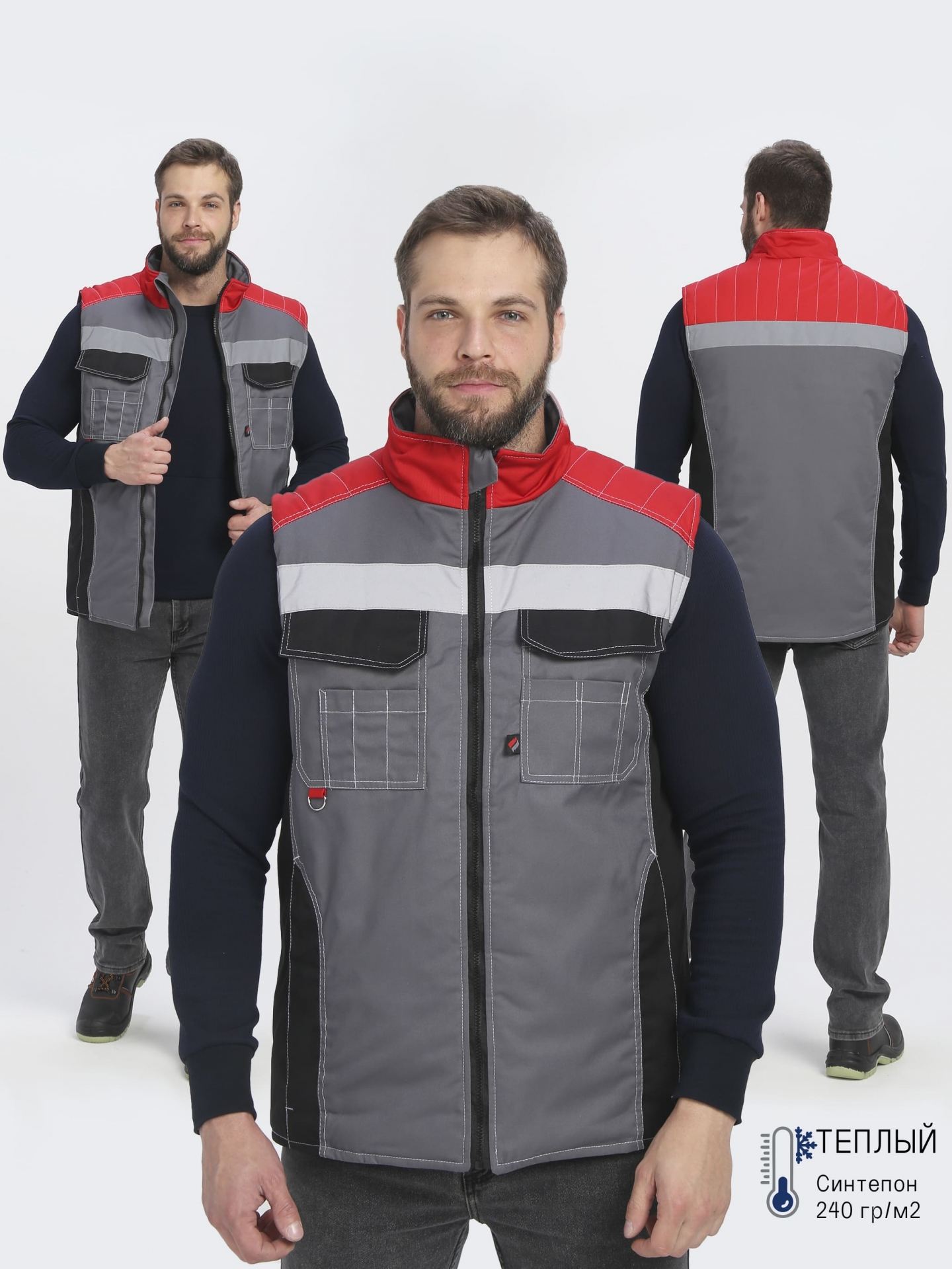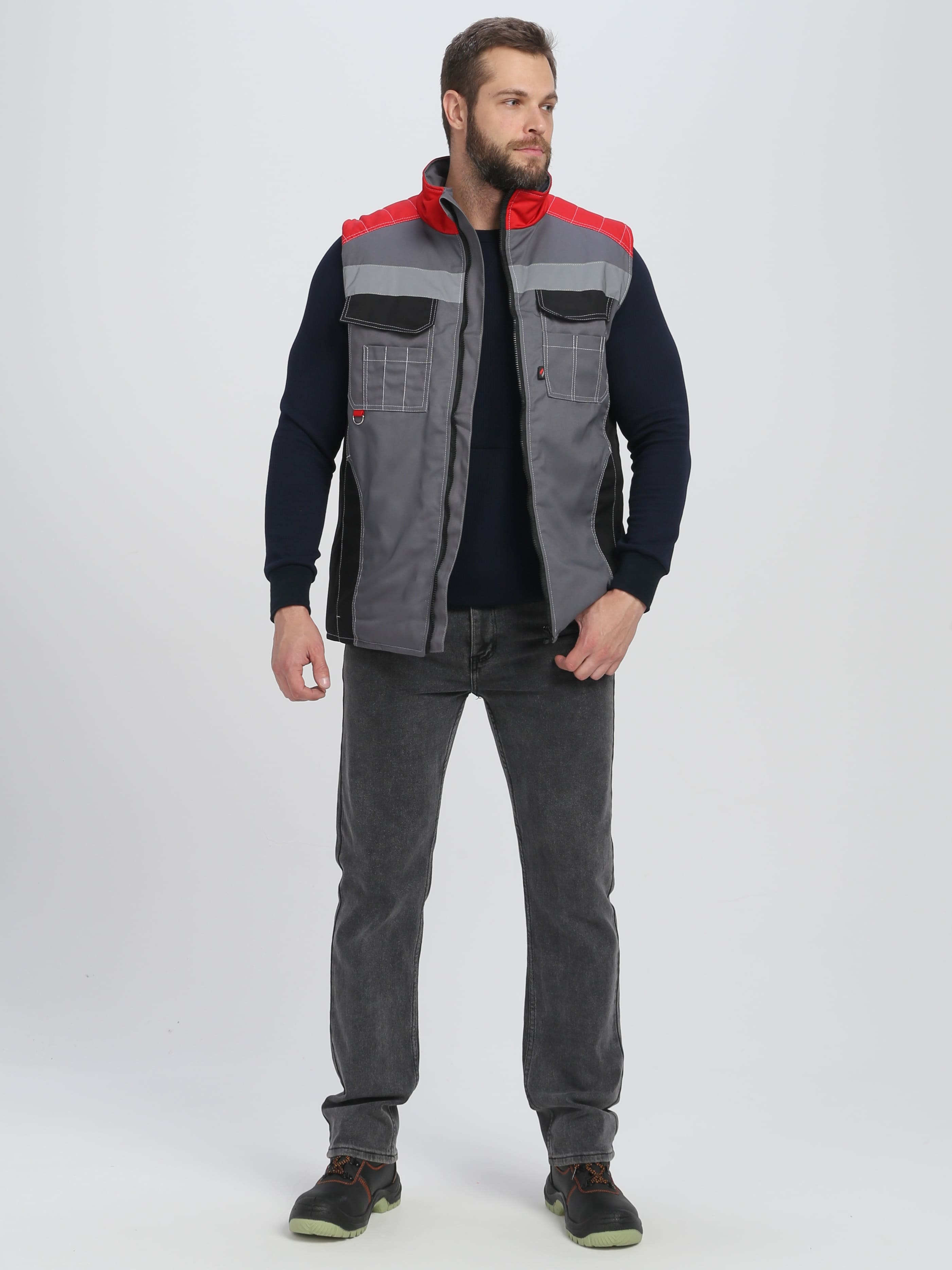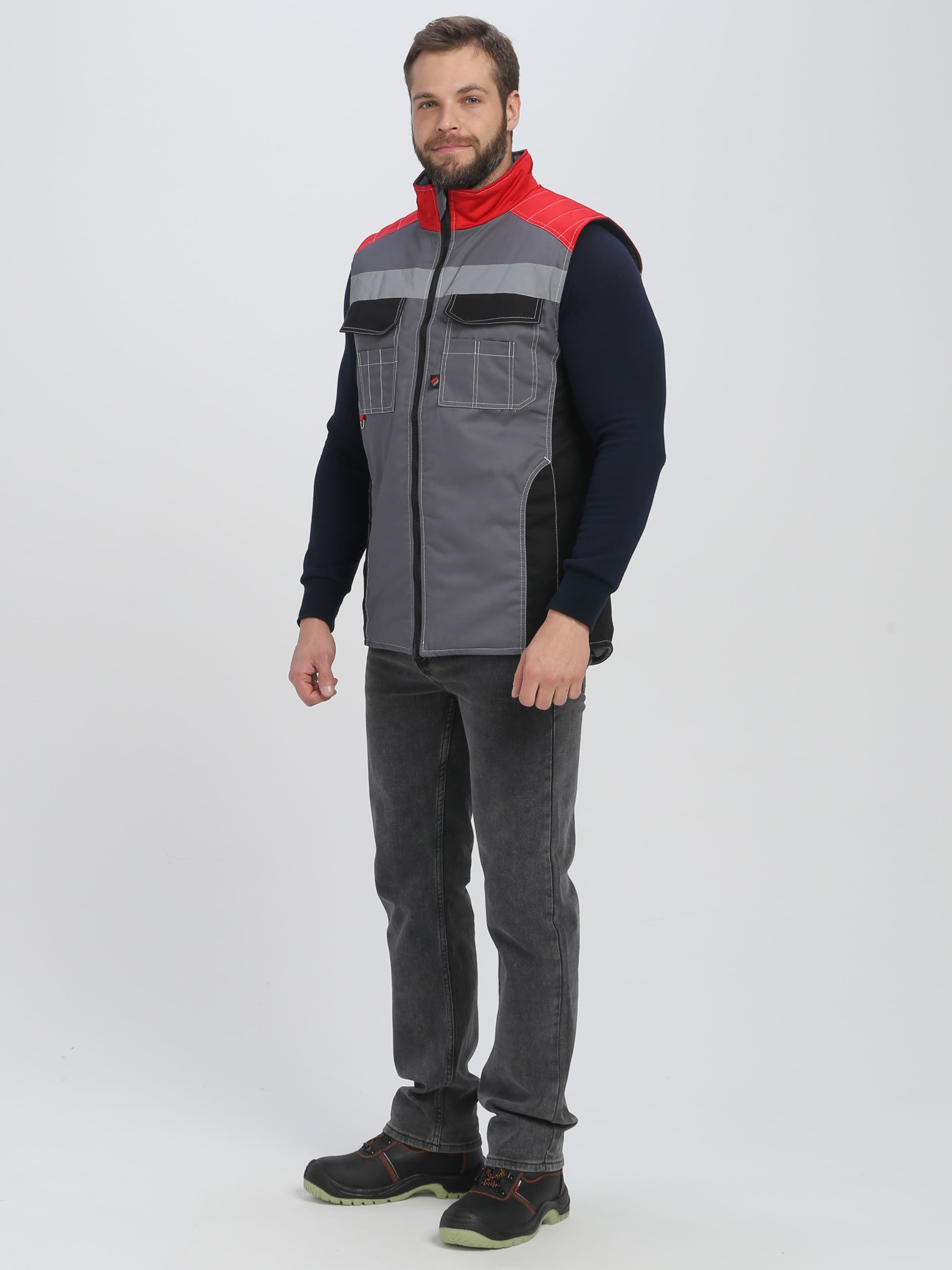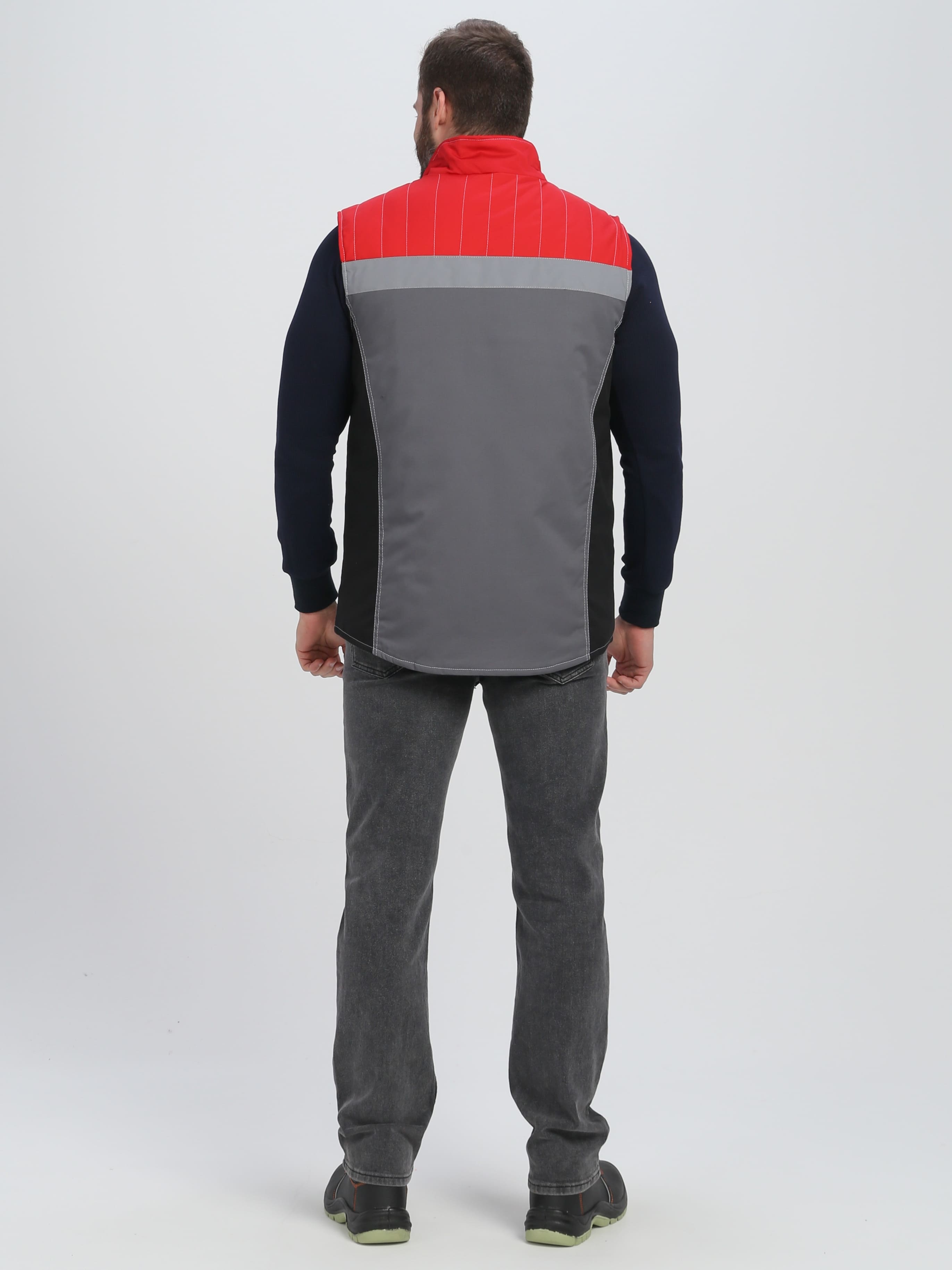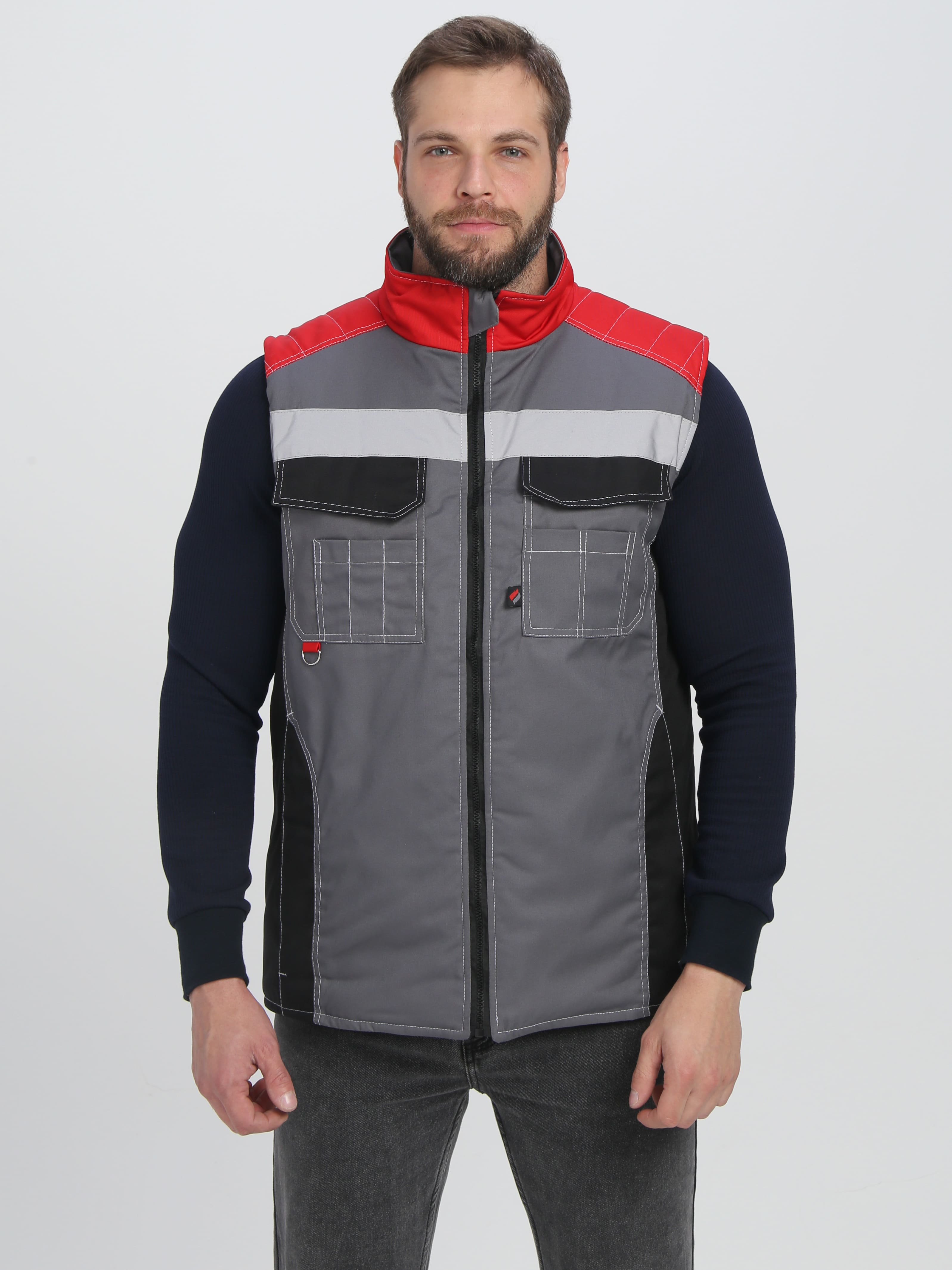 Жилет утепленный ФОРМУЛА на замке, пл. 240, 65пэ, 35хб, сер/красн/черн